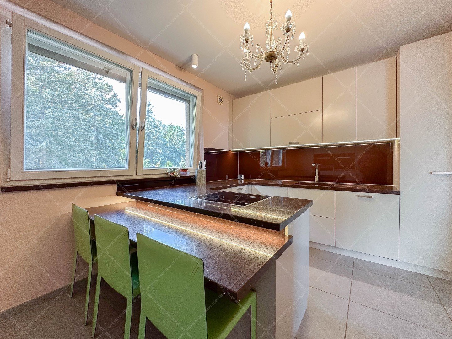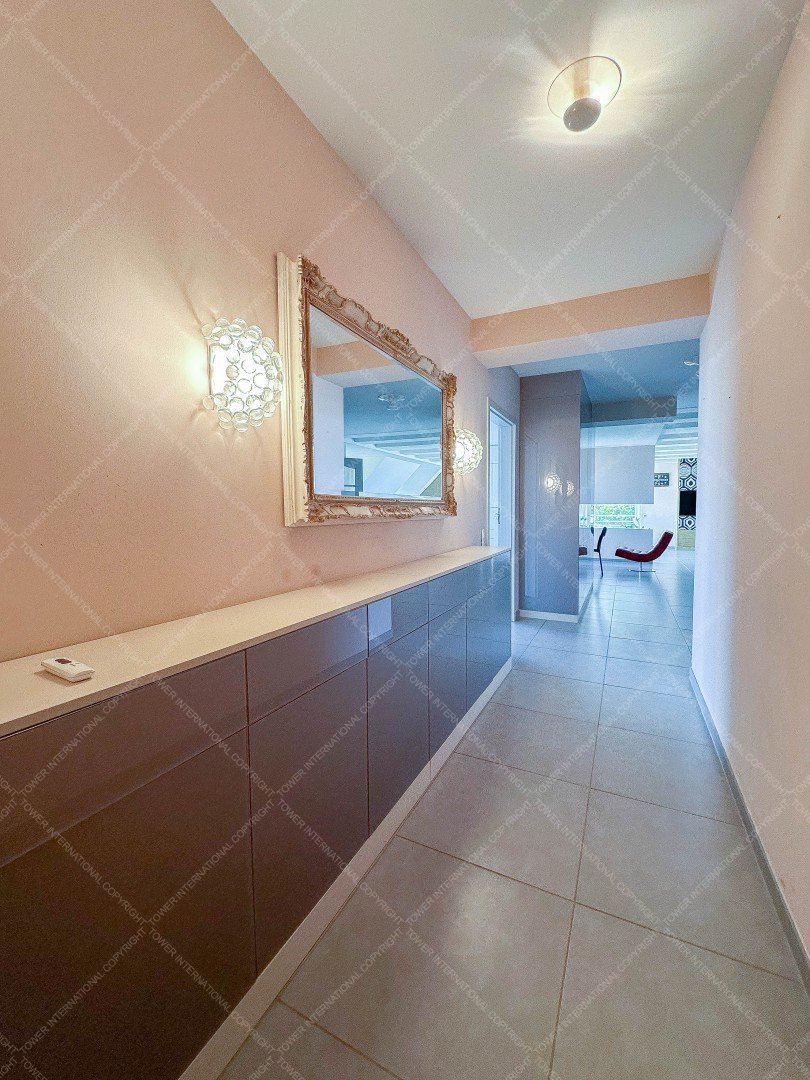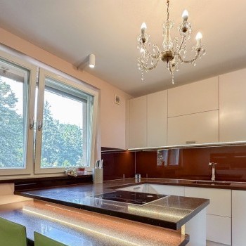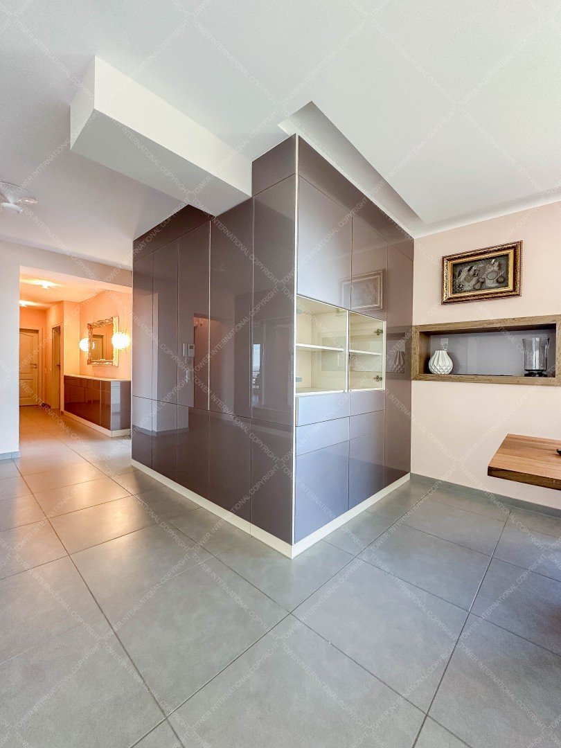 The apartment underwent a complete, premium-quality renovation in 2017, which included the installation of a modern heating and cooling system (floor and ceiling cooling/heating, heat pump), replacement of the water and electrical networks, new roof structure, smart home system, 3-layer soundproof windows and doors with electric shutters, as well as custom furniture and marble coverings.