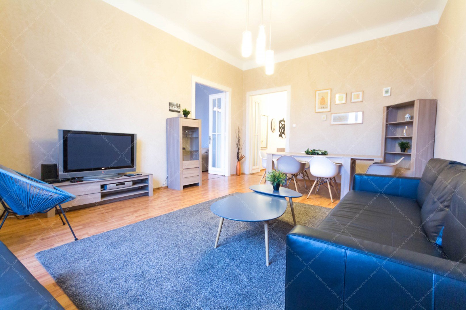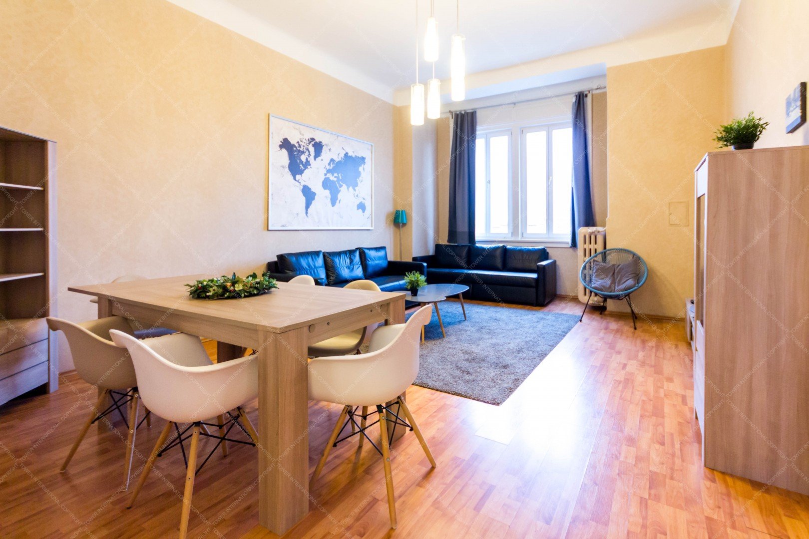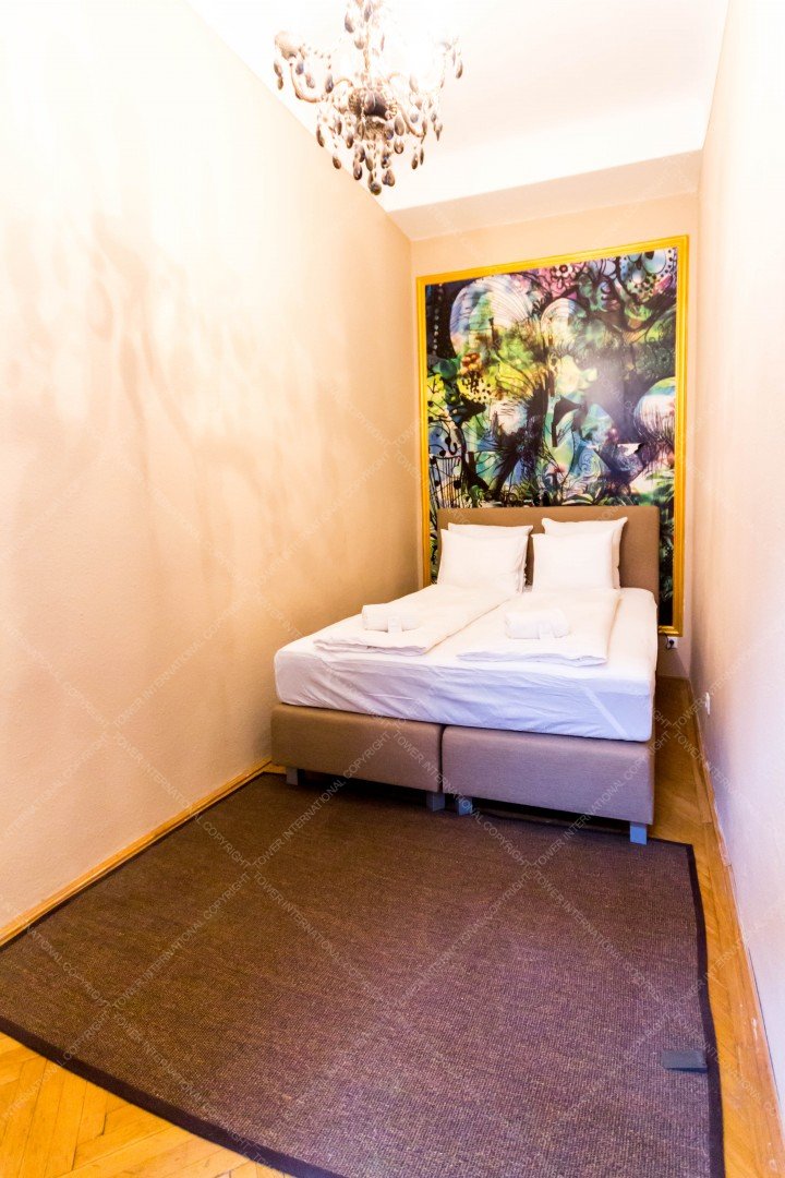 We are offering for rent a 91 sqm apartment in district 7, Rákóczi út, next to Astoria . It is situated in a classical style building on the 4th floor, has elevetor. The flat consists of 2 bedroom, a living room, kitchen and bathroom with toilet. Windows are facing to the Dohány street. Common cost: 55000 HUF /month. including heating. Central heating.