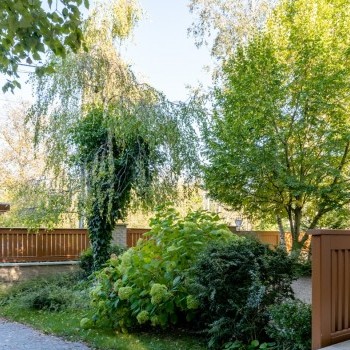 A 20 m2 terrace, a fitness room, a sauna, a Jacuzzi, 2 garages and a private garden with a pond and watering system also belong to the alarm protected and air-conditioned property.