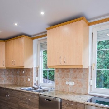 4 balconies, a terrace, 2 garage spaces and a common used garden also belongs to the renewed and alarm protected property.