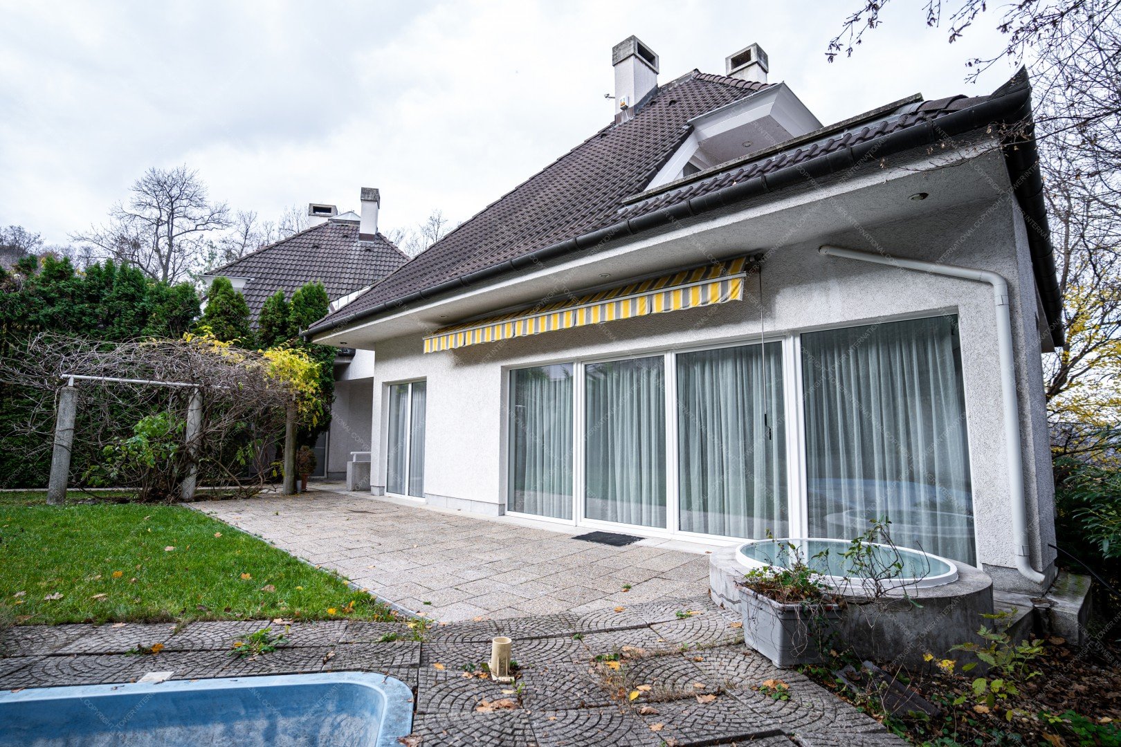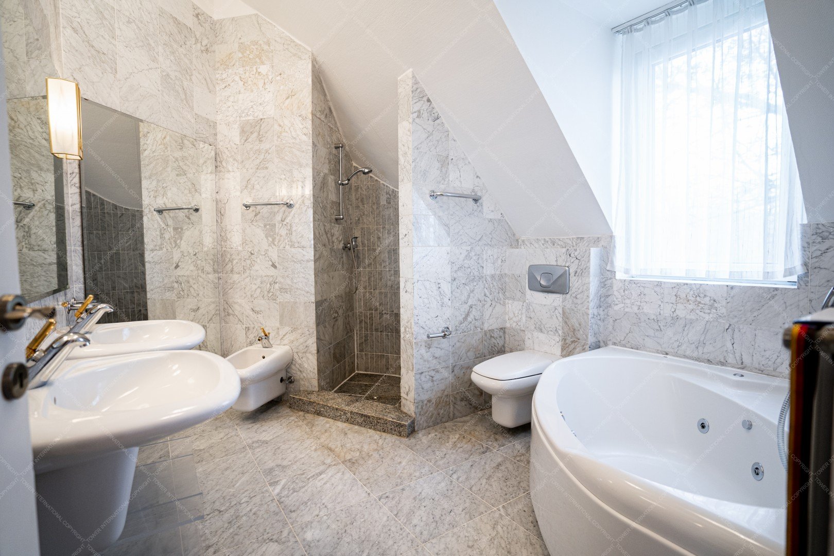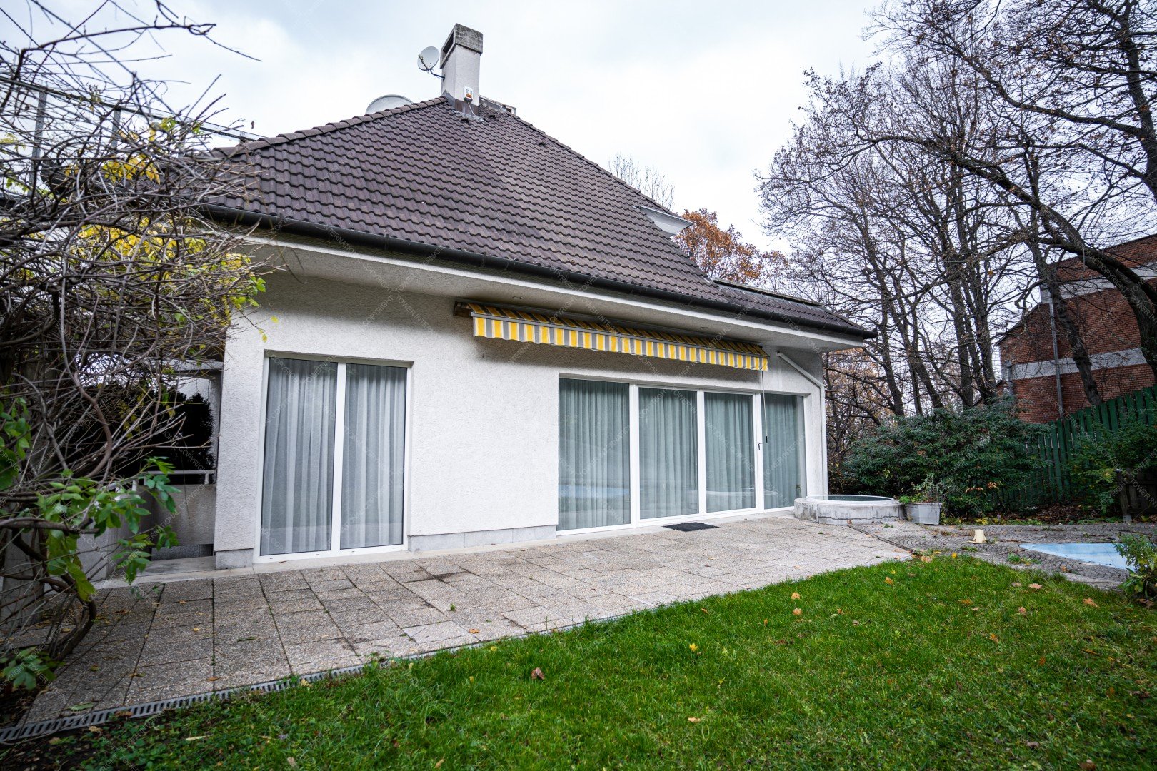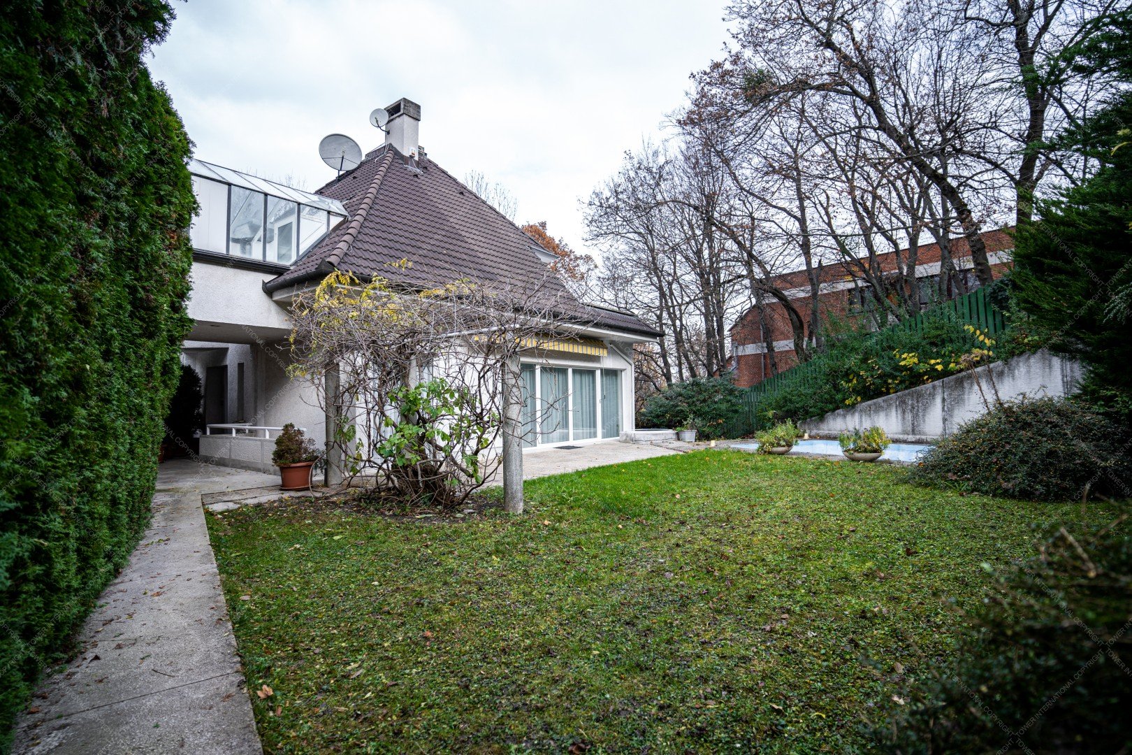A 2-storey, unfurnished, detached house is for rent at Svábhegy, in a pleasant, green area. This luxurious house has 5 bedrooms, a living room with a fireplace, 3 bathrooms, a restroom and a well equipped, American style kitchen. A sauna, an outdoor swimming pool, 4 garages and a private garden also belong to the property.