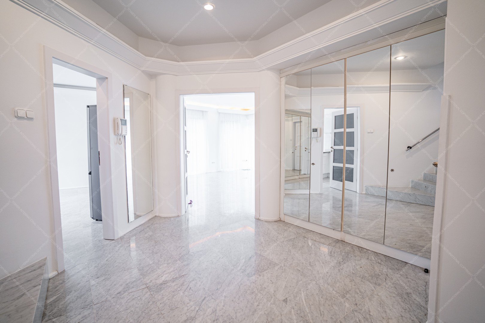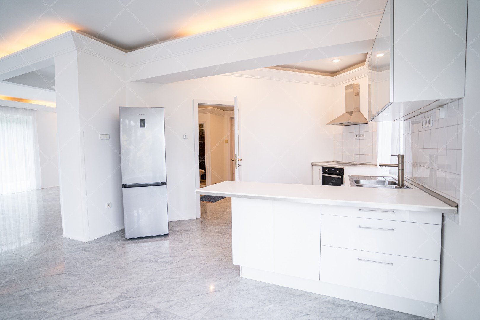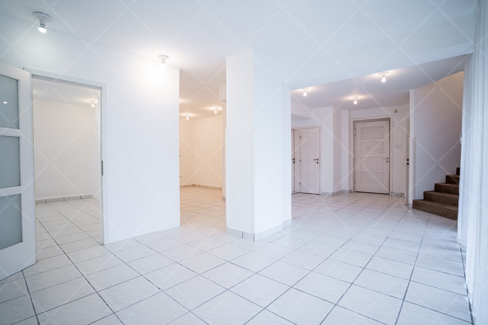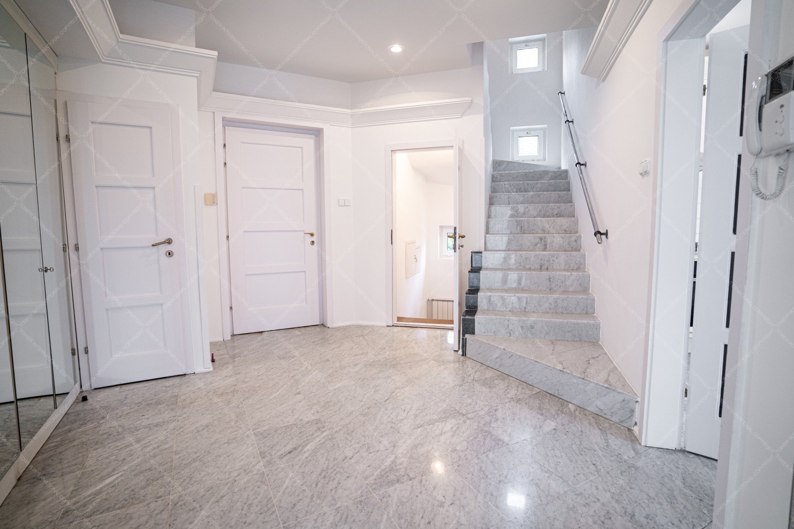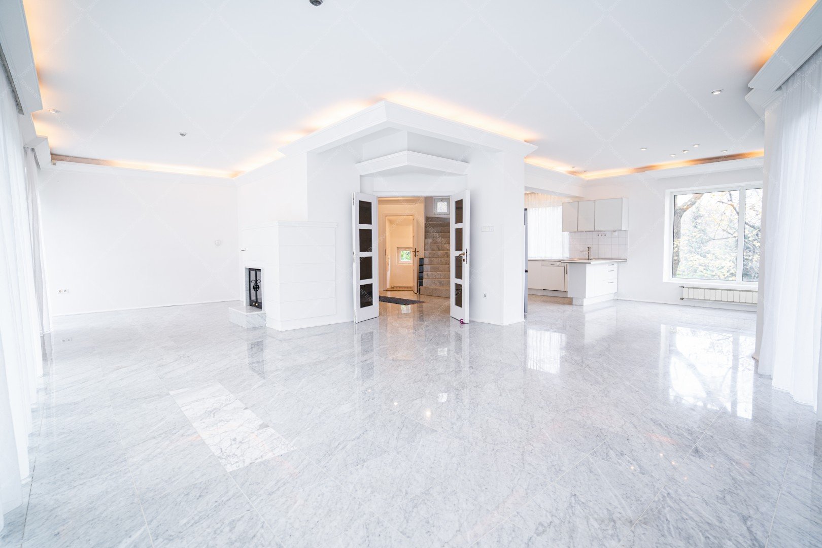 A 2-storey, unfurnished, detached house is for rent at Svábhegy, in a pleasant, green area. This luxurious house has 5 bedrooms, a living room with a fireplace, 3 bathrooms, a restroom and a well equipped, American style kitchen. A sauna, an outdoor swimming pool, 4 garages and a private garden also belong to the property.