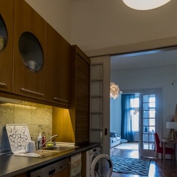 We offer for rent a 100 sqm apartment, in district 5 at the riverside. It is situated in an elevarored, classical building 3rd floor.