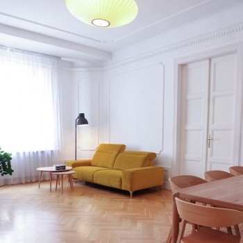 A 140 sqm, furnished luxury apartment is for rent close to the Danube and Olimpia Park. The windows are facing the river. The apartment is newly renovated. It consists of a living room, a separated kitchen, 3 bedrooms, 3 bathrooms, a guest toilet and a laundry room.