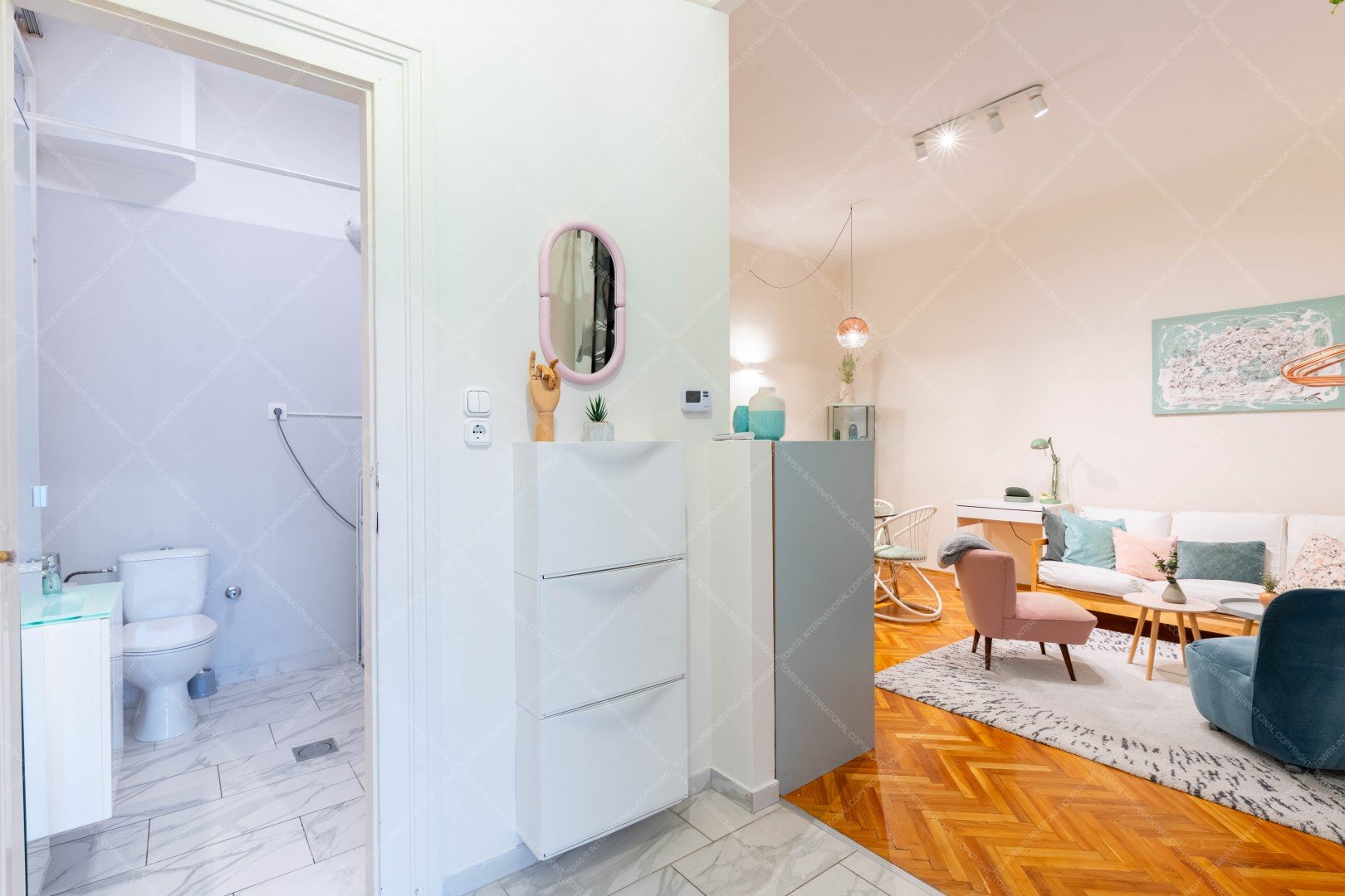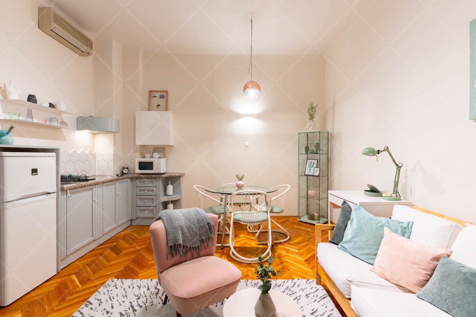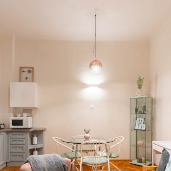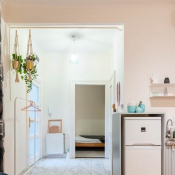 A renovated, air-conditioned 1-bedroom apartment is available for long-term rent on Várkert Rakpart, in the heart of District I.