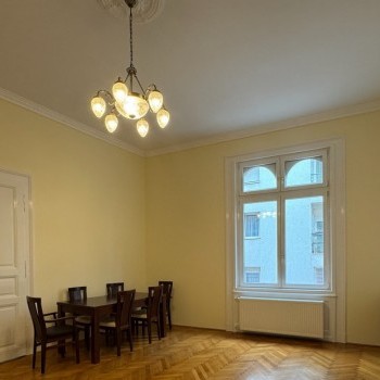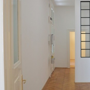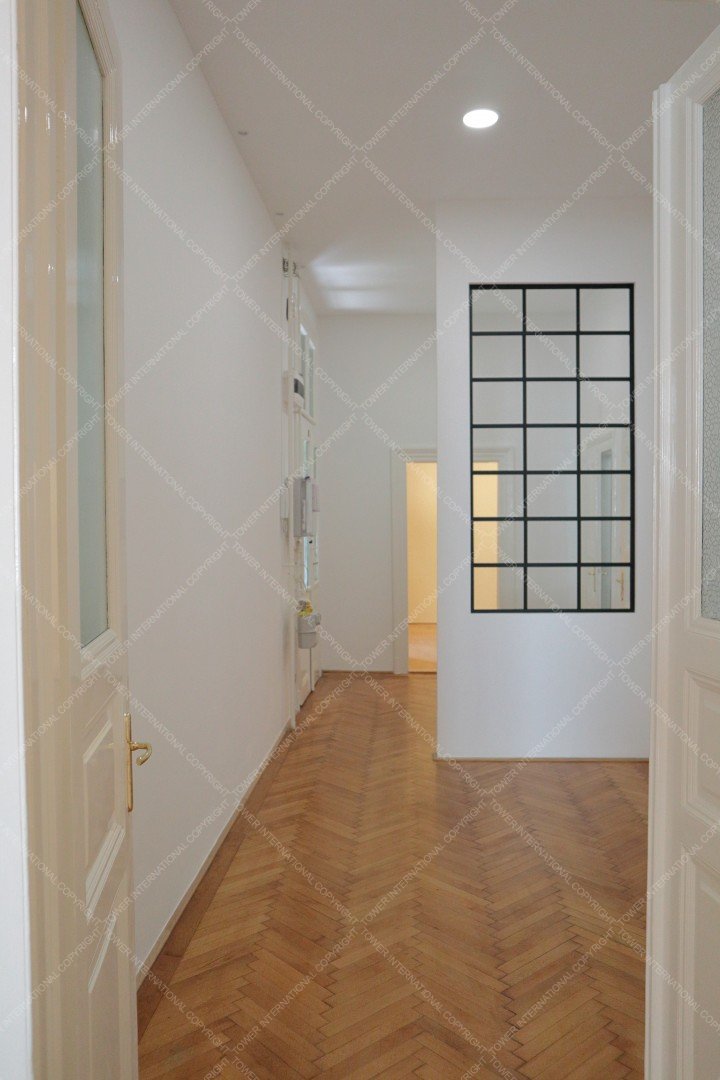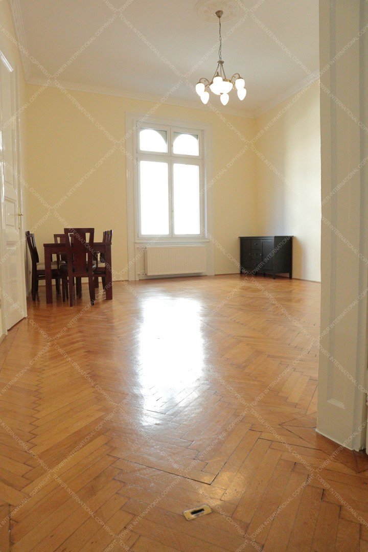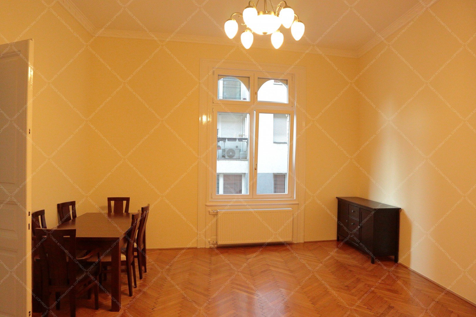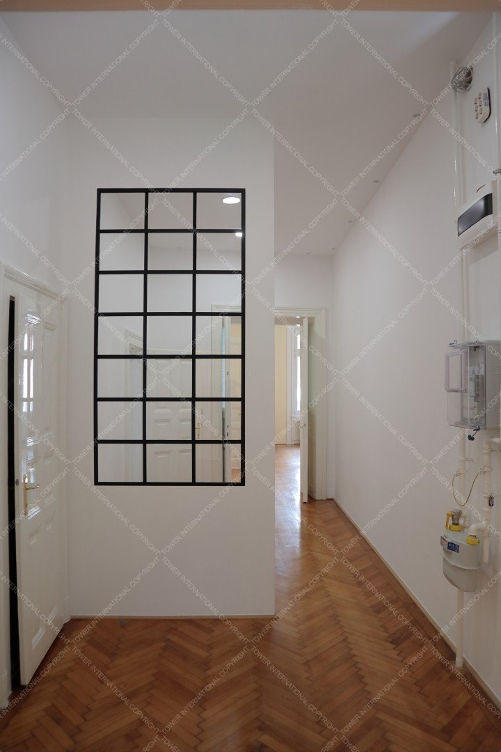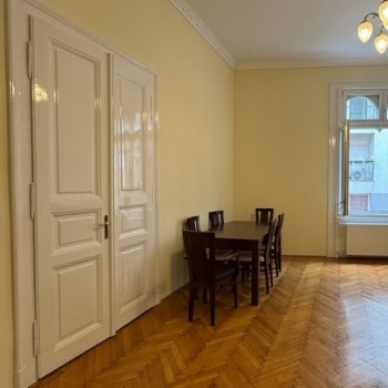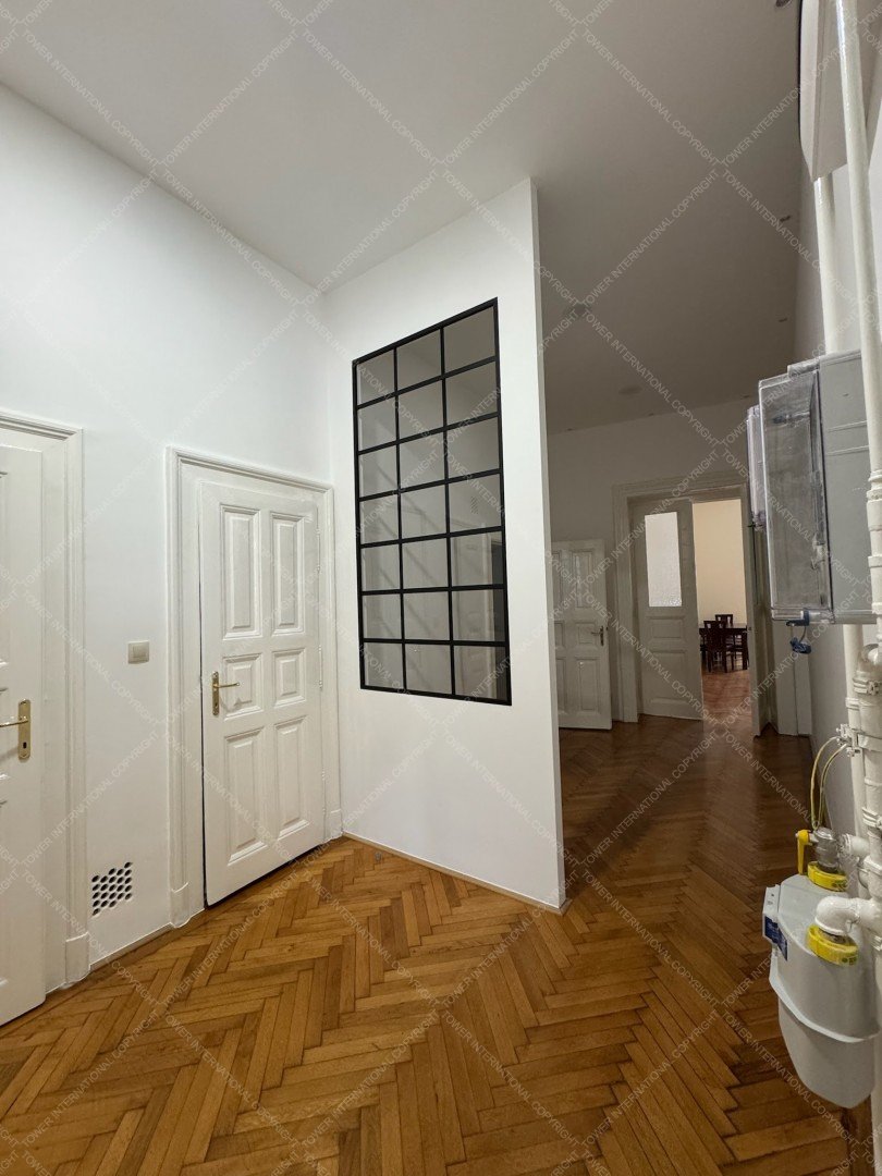 In District VIII, just off Corvin Promenade, a fully renovated, non-smoking 109 m² first-floor apartment is available for long-term rent in a quiet, well-maintained building.