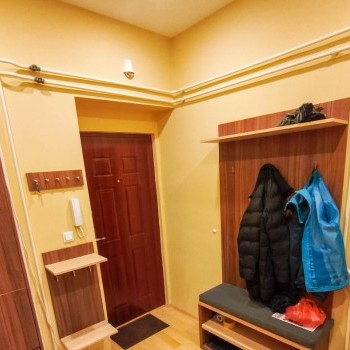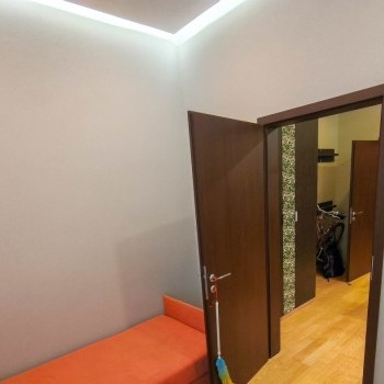 The apartment consists of 3.5 rooms, a modern open-plan kitchen, pantry, two bathrooms, walk-in closet, entrance hall, and two balconies. All rooms have windows equipped with mosquito nets, including the balcony doors.