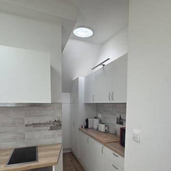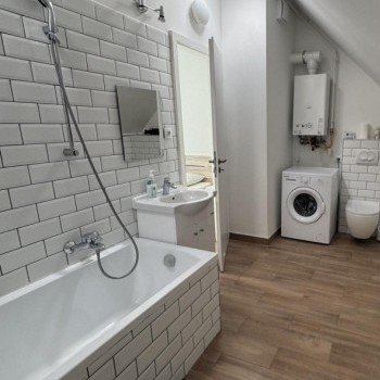 The apartment is exceptionally bright and offers generous storage space. It comes fully furnished, includes air conditioning, and has previously been used as an Airbnb, so it’s ready for immediate move-in. Heating is provided by a modern gas boiler (cirko).