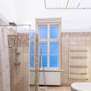The bathrooms are equipped with underfloor heating, the apartment has gas central heating (cirko system) and 2 air conditioning units.