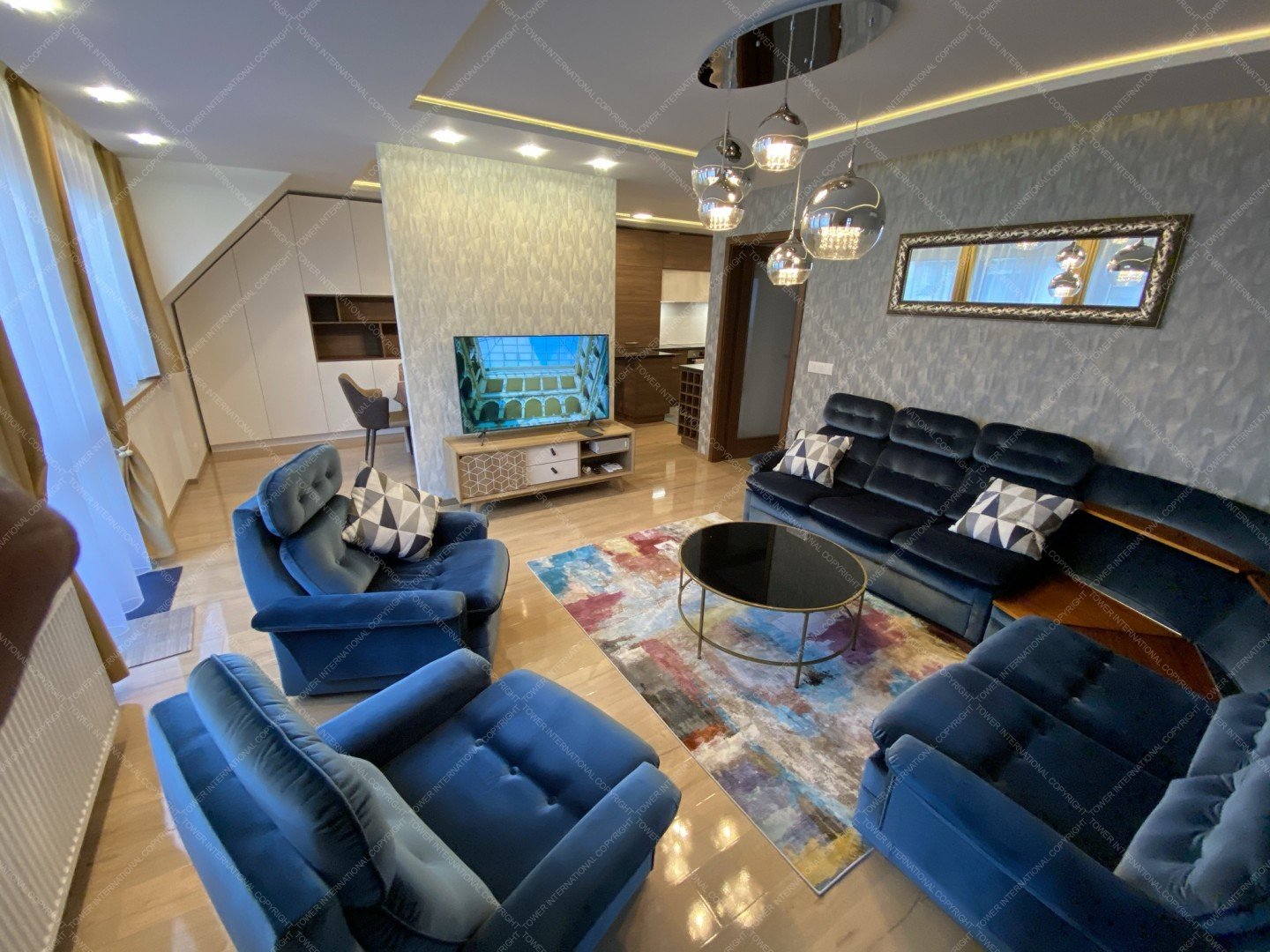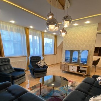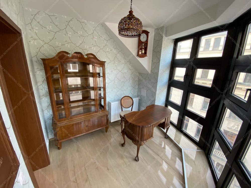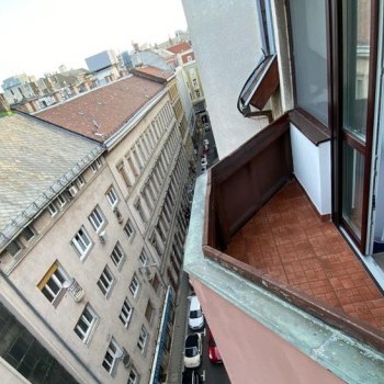 Renovated air-conditioned, large, corner apartment for rent in Aranykéz Street. Top level, with two balconies overlooking Váci Street from the conservatory. Luxury quality smart home. Two bedrooms. Two toilets. Shower and bath. Large living room, separate dining room, large kitchen, pantry room. The jewel of the apartment is the conservatory, working room. Thanks to the corner apartment and the top floor, all rooms are bright. The property is fully furnished, mechanized and equipped with everything. Everything can be controlled from an iPad, but also from a separate switch in the apartment. SONOS Home Audio system in every room. Two month deposit. Garage rental in the parking house. The house was maintained and tidy.