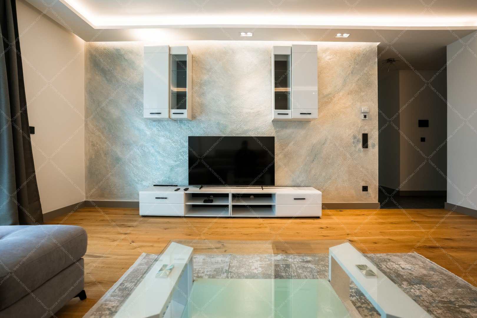 It consists of 2 bedrooms, living room with open plan kitchen and dining area, 2 bathrooms and 2 terraces.