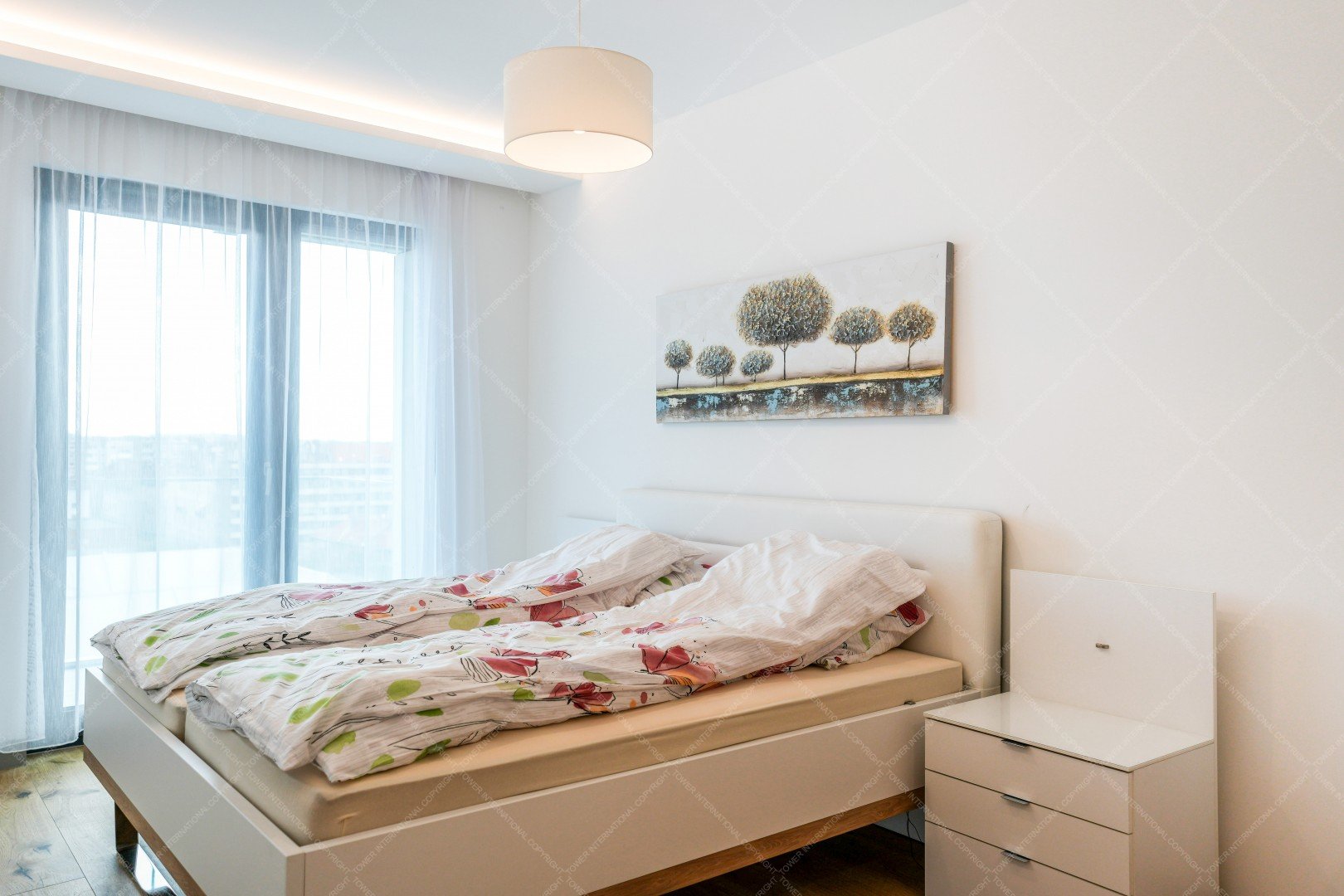 We offer for rent an 80 sqm furnished, newly built apartment in the 13th district in the Duna Pearl residential complex. The property is located on the 9th floor of a building with elevator.