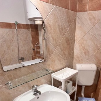 Heating is provided by a convector in the large room, electric radiator in the small room, hot water by boiler.