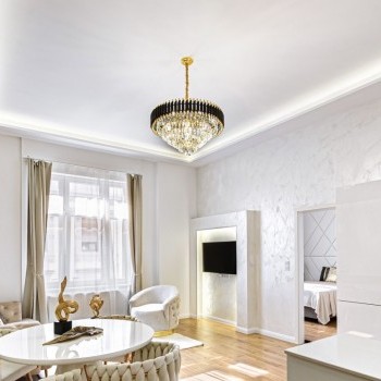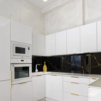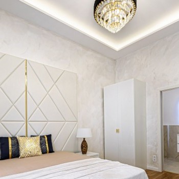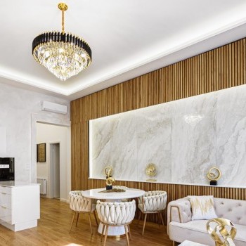 The apartment has: 2 bedrooms, living room with American kitchen, 2 bathrooms, separate toilet and a hall.