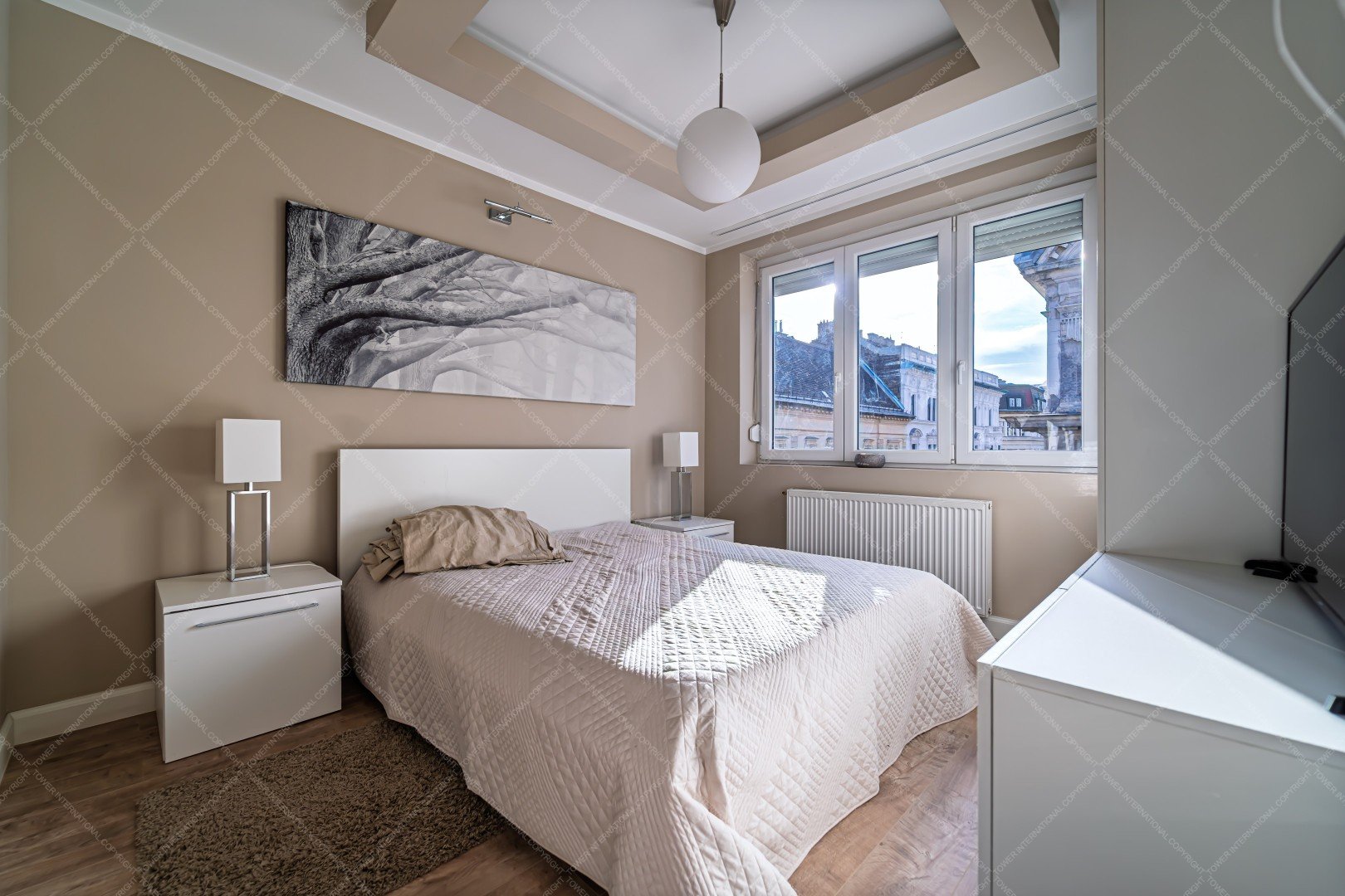 58 sqm, nicely furnished, air conditioned, brighting apartment is for rent in Kálmán Imre street near the Parliament, with view over the church and streets. It consists of 2 bedrooms, a separate kithcen and a bathroom.