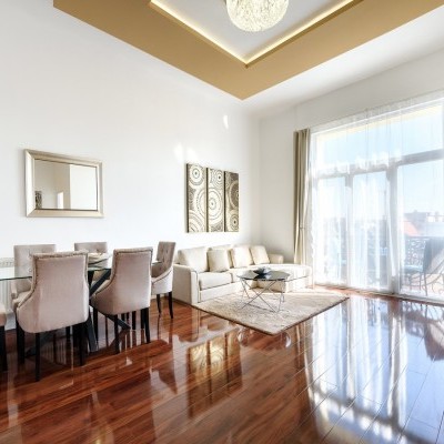 For Rent: A stunning, fully renovated 115 sqm apartment located at the prime corner of Székely Mihály Street and Király Street, just a few steps from Deák Ferenc Square. Situated on the 4th floor of a well-maintained building with an elevator, this bright, street-facing property offers three spacious bedrooms, a generous living area with an open-plan kitchen, three modern bathrooms, and two balconies. An exceptional home in the heart of the city.