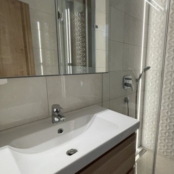 The apartment is fully equipped with modern appliances and includes air conditioning. It has never been lived in before, offering the experience of moving into a completely new home.