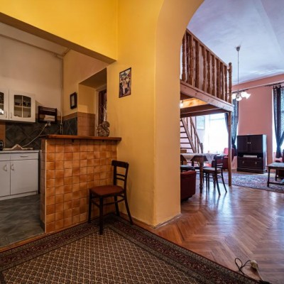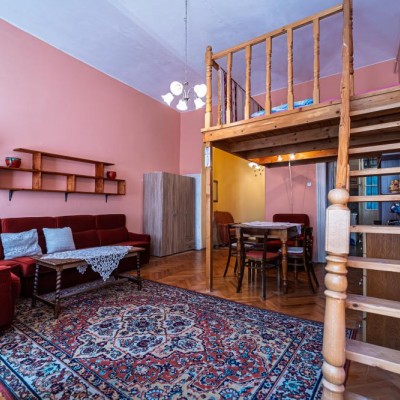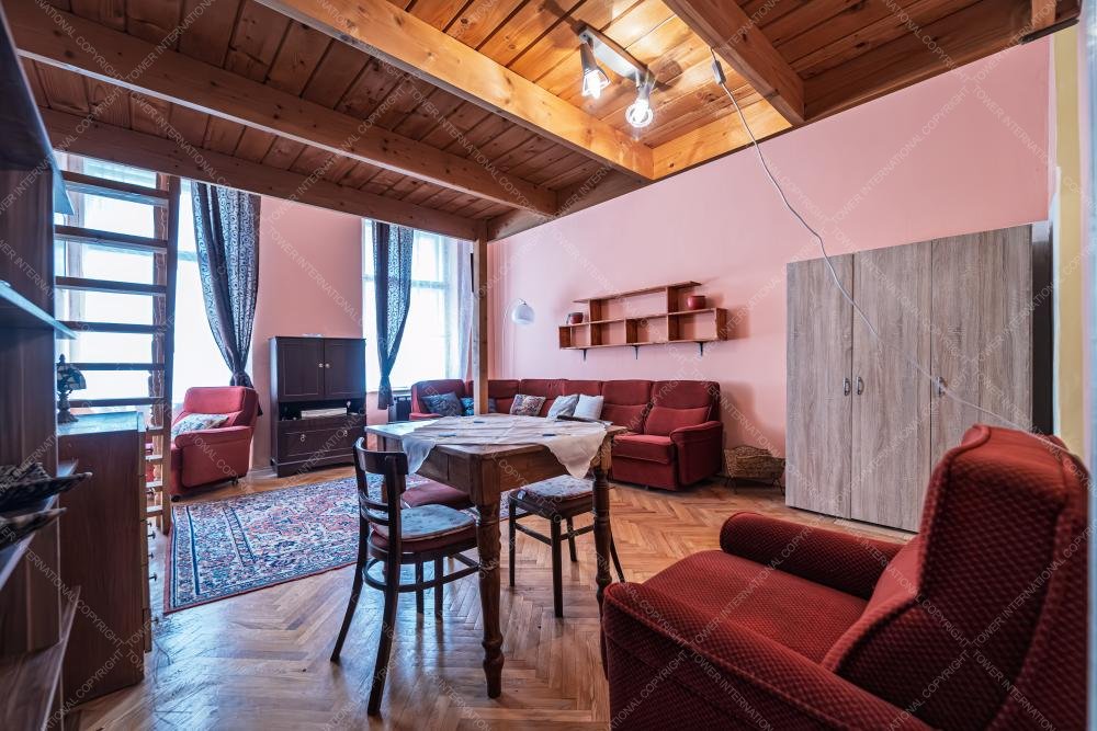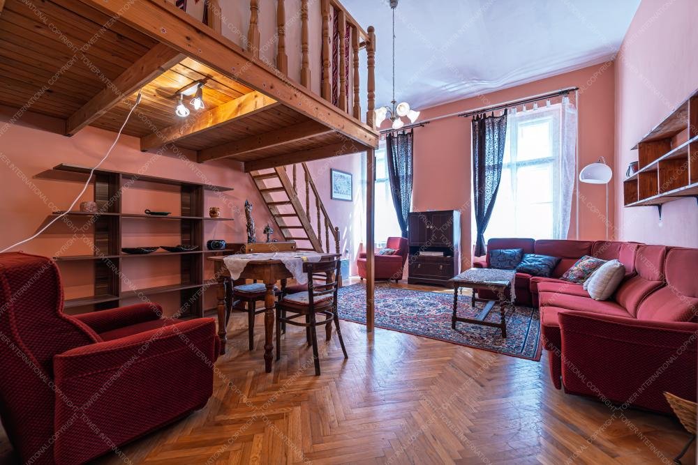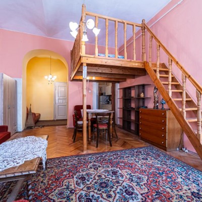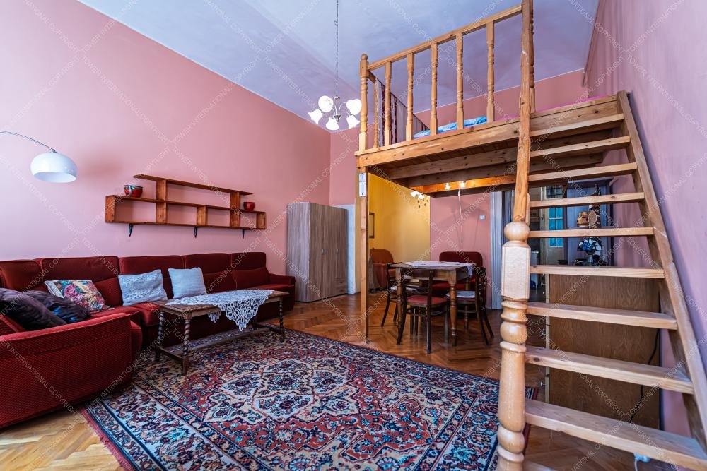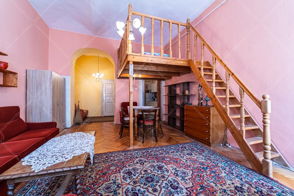 For rent in the 6th District, Kmety György Street, a charming apartment with gallery on the 2nd floor of a building without an elevator. The apartment faces the street and features a spacious room with a gallery, offering practical use of space.