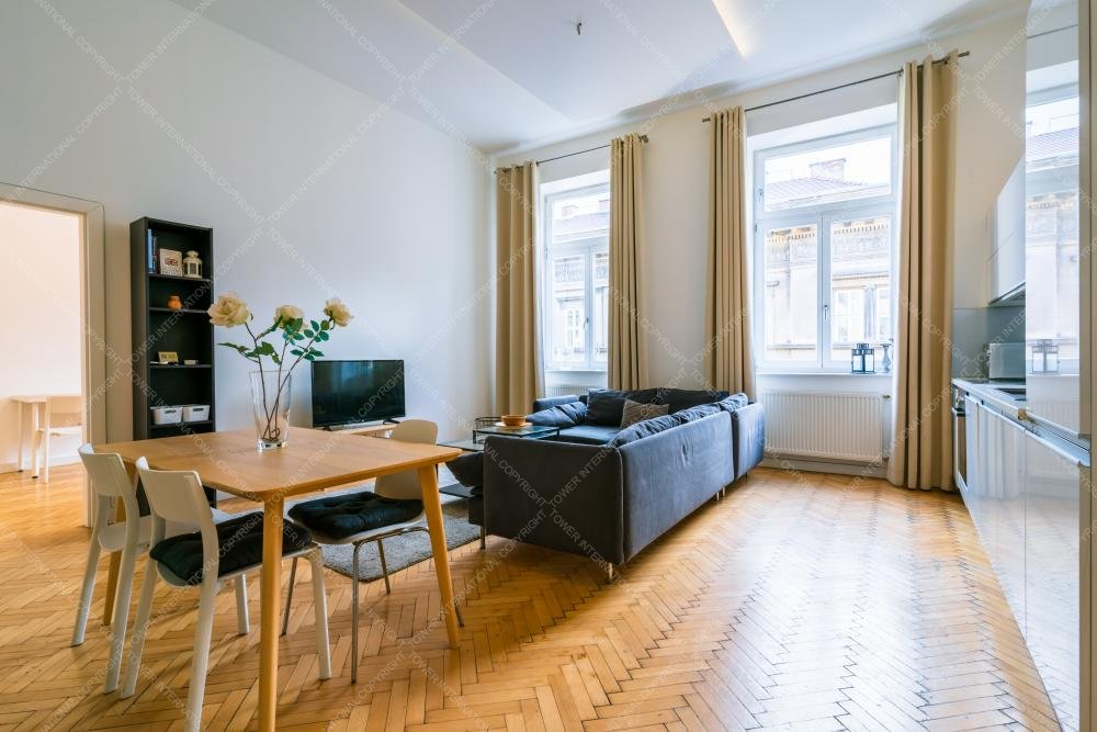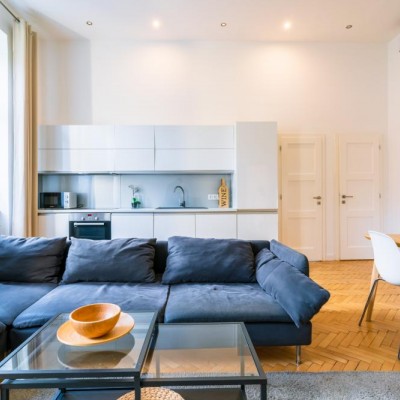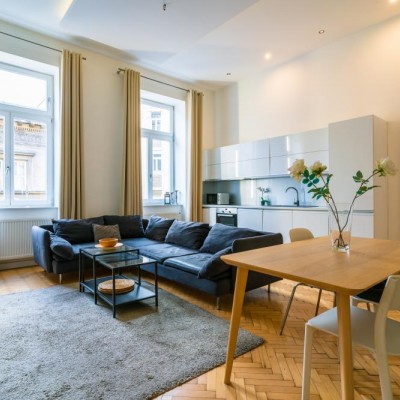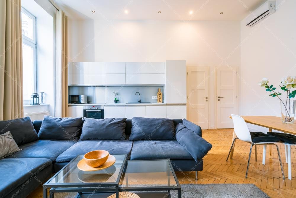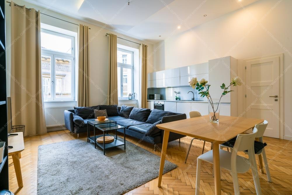 We are offering for rent a 84 sqm (82sqm according to the deed), fully renovated apartment in Eötvös Street, next to Ring Road, close to Oktogon and Andrássy Avenue. The street facing property is situated on the 2nd floor in a nice classical style building which has got an elevator. The flat consists of 3 good size bedrooms, open plan kitchen, 2 bathrooms and a small hall. It has furniture as well. The public transportation connections are superb thanks to tram line 4 & 6.