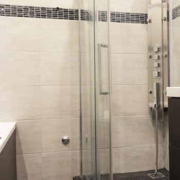 - Bathroom with hydromassage shower, jacuzzi bathtub with lighting, music function
