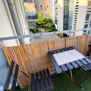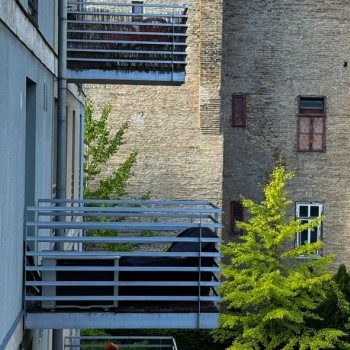 A harmadik emeleti, liftes házban található lakáshoz tartozik egy erkély, valamint a bérlő használhatja a ház belső kertjét és tetőteraszát.