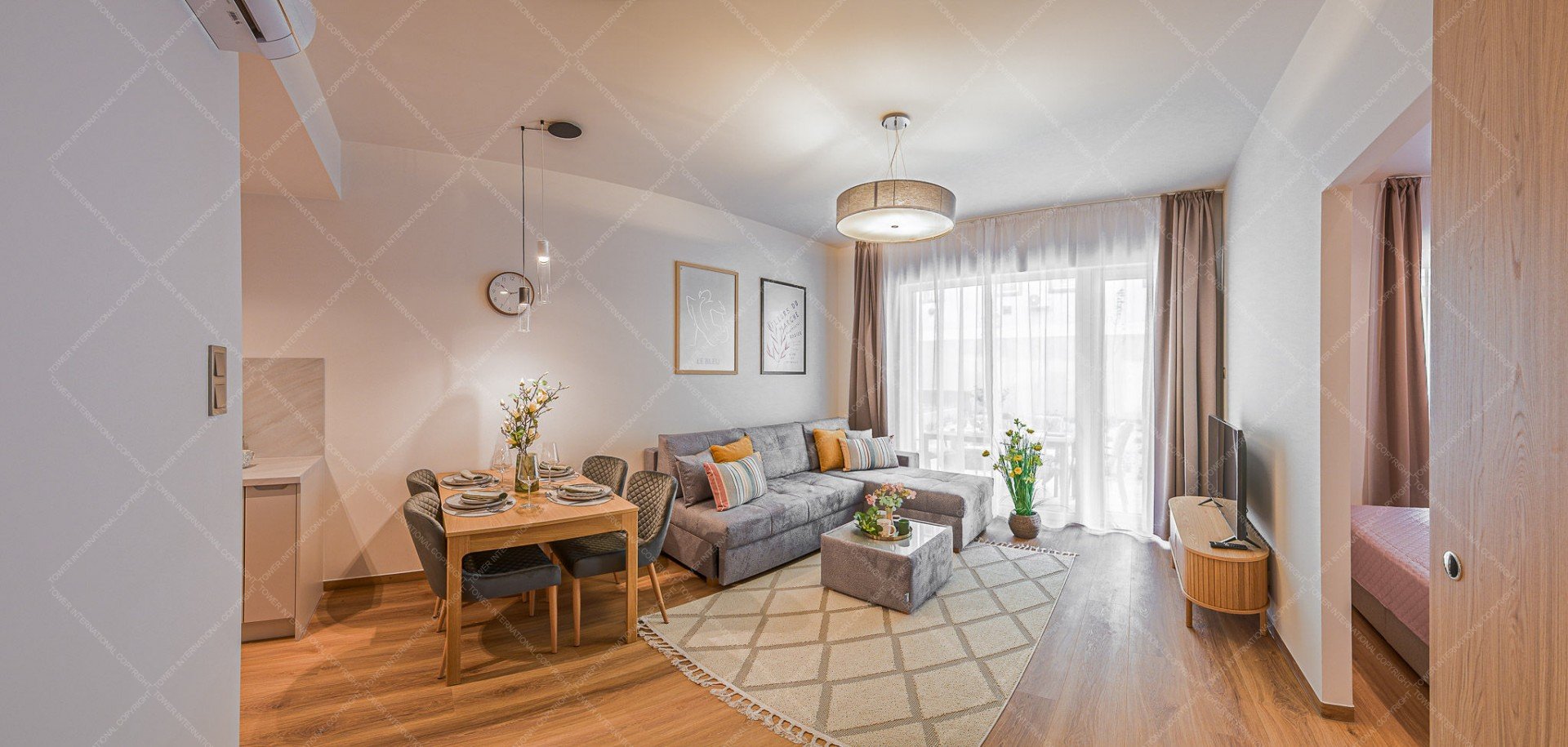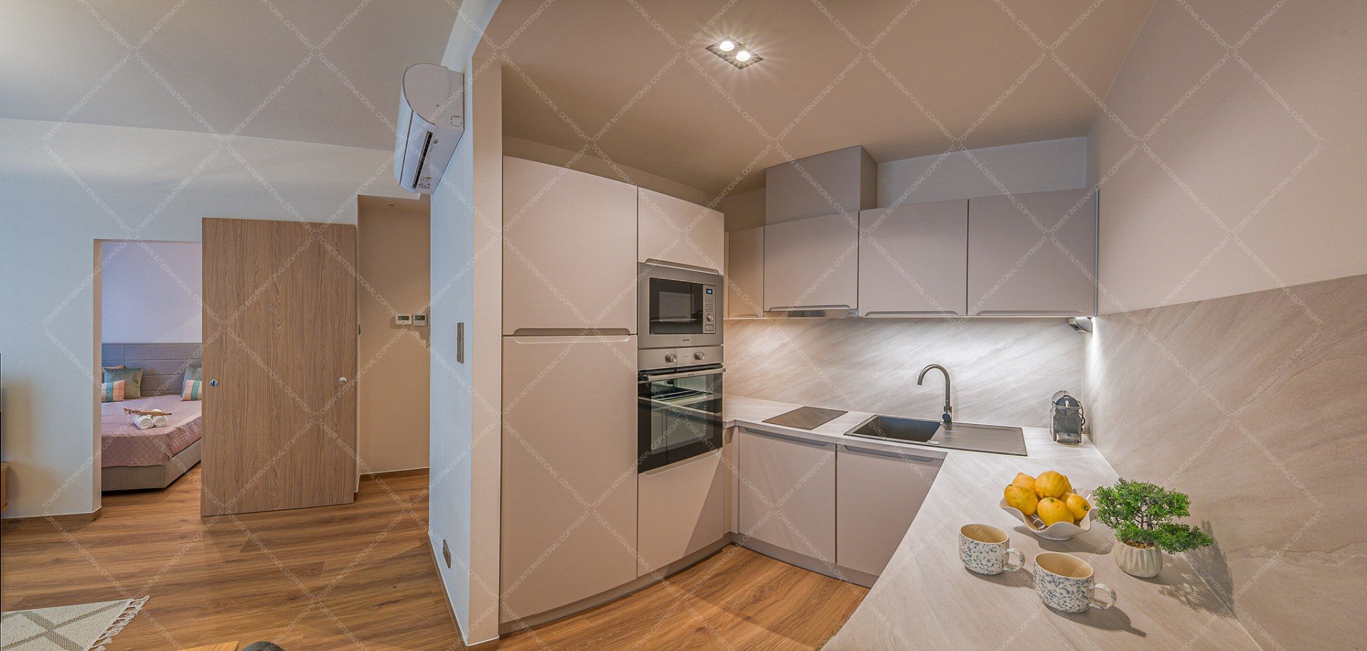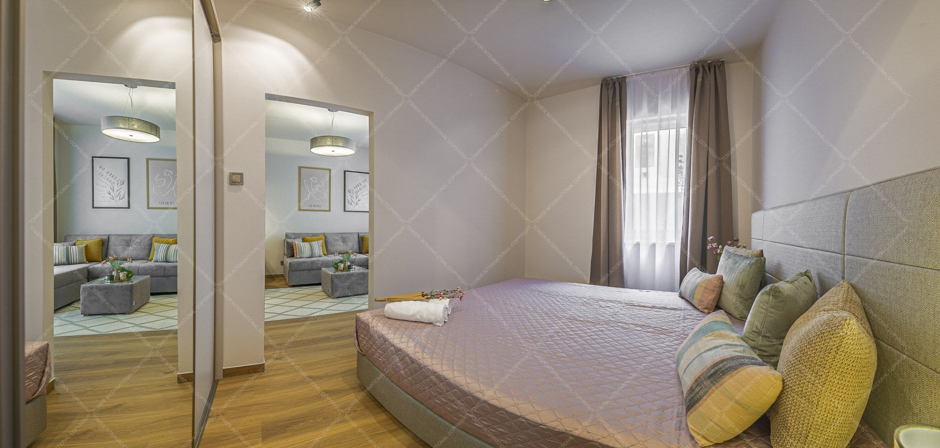 The apartment offers a bright and spacious living room and a cozy bedroom, all furnished in a clean, contemporary style. Everything is brand new and thoughtfully designed – all you need to bring is your suitcase! The apartment includes air conditioning for summer comfort and an elevator in the building for easy access.