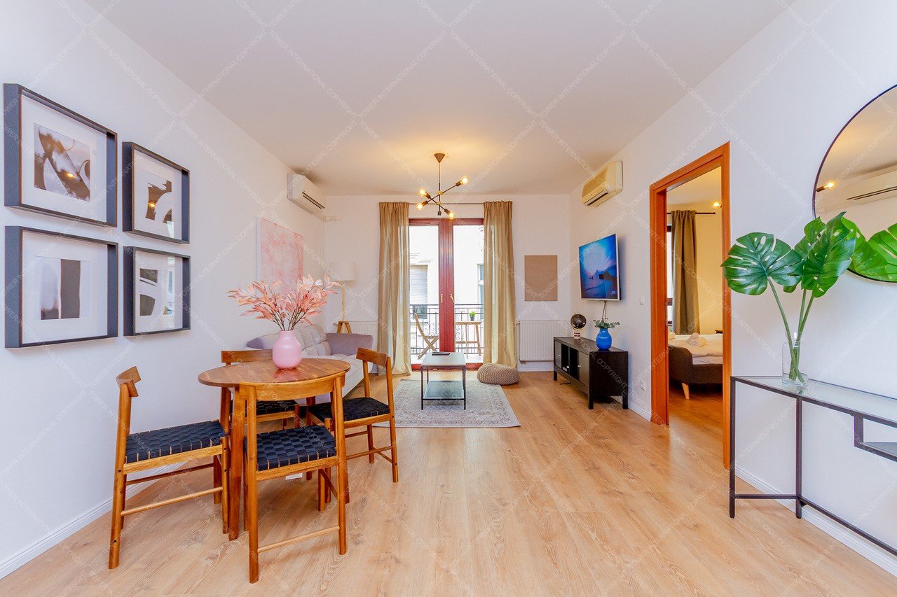 From December 1st, my 60 m² apartment on the 3rd floor of a beautiful building on Király Street will be available for rent. The apartment is located in an elegant building with an elevator and concierge service on the ground floor. It features a spacious living room with a kitchen, one bedroom, a bathroom with a bathtub, a separate toilet, and a walk-in closet. The balcony overlooks Székely Mihály Street, and a private storage room also belongs to the apartment. The monthly rent is €1100 plus approximately €160 for utilities. Available for long-term rental, this apartment is a perfect choice for those looking for a stylish, centrally located home in one of Budapest’s most vibrant neighborhoods.