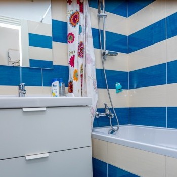It consists of 2 bedrooms, one with private bathroom, a living room with open-plan kitchen, a 2nd bathroom and a balcony.