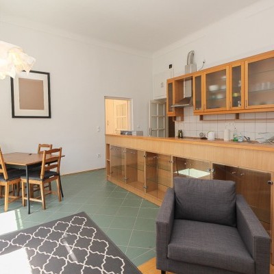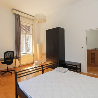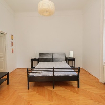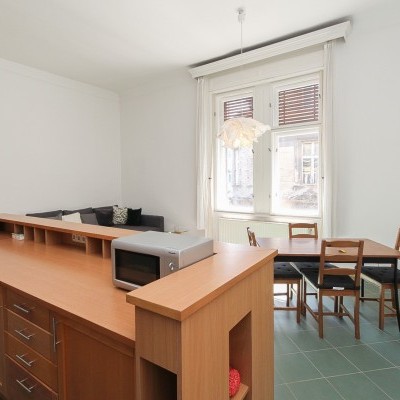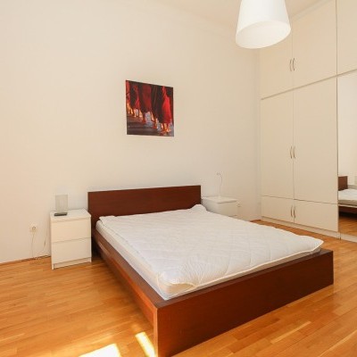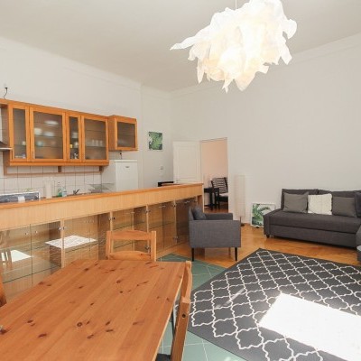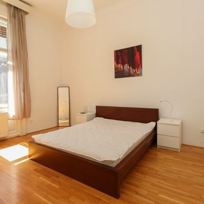 We offer a 93 sqm furnished apartment in district 6. in Jókai utca. It is situated in a classical building on the 3rd floor. The windows are facing the street. The apartment is newly renovated. It consists of a living room with open plan kitchen, 2 bedrooms, 1 bathroom and toilet. Common cost is 19700 Ft/month. Only long term rent!