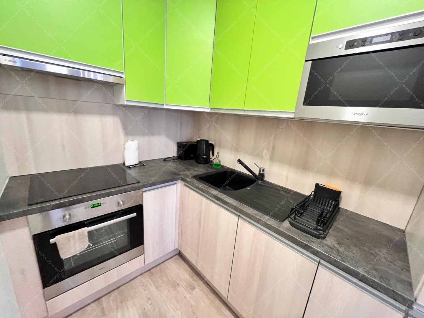 One bedroom plus living room, fully modern kitchen with dishwasher, electric hob and oven.