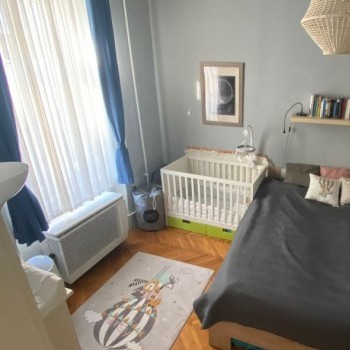 This furnished, 60 m² classical-style apartment is located in a peaceful area near Déli Railway Station and Széll Kálmán Square. Although close to major transport links, the property faces an inner courtyard with large trees, offering a quiet, birdsong-filled atmosphere.