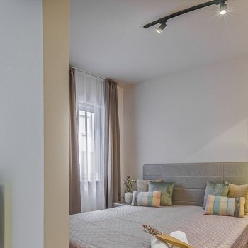 The apartment offers a bright and spacious living room and a cozy bedroom, all furnished in a clean, contemporary style. Everything is brand new and thoughtfully designed – all you need to bring is your suitcase! The apartment includes air conditioning for summer comfort and an elevator in the building for easy access.