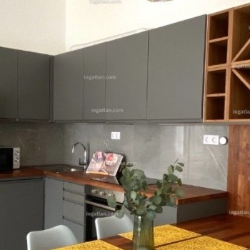 The apartment is accessible from a quiet, lockable corridor. It includes a brand-new built-in kitchen equipped with an electric cooktop, dishwasher, microwave, and refrigerator. The apartment is offered fully furnished as shown in the photos and is available for immediate move-in.