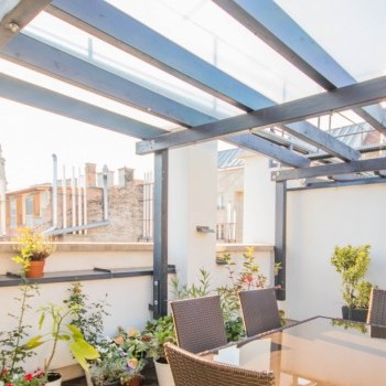 We offer a luxury apartment with a spacious rooftop terrace in district 6 for long-term rent, few minutes from the Arany János metro station and the Basilica.