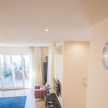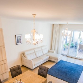 The 90 m2 property has 2 bedrooms, 2 bathrooms, 2 toilets, a spacious living-dining room with an open kitchen, a laundry room and several built-in gardrobes, and a large terrace.