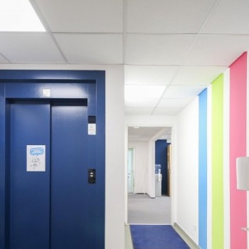 It is situated in a newly built building on the 2nd floor. The windows are facing to the street.