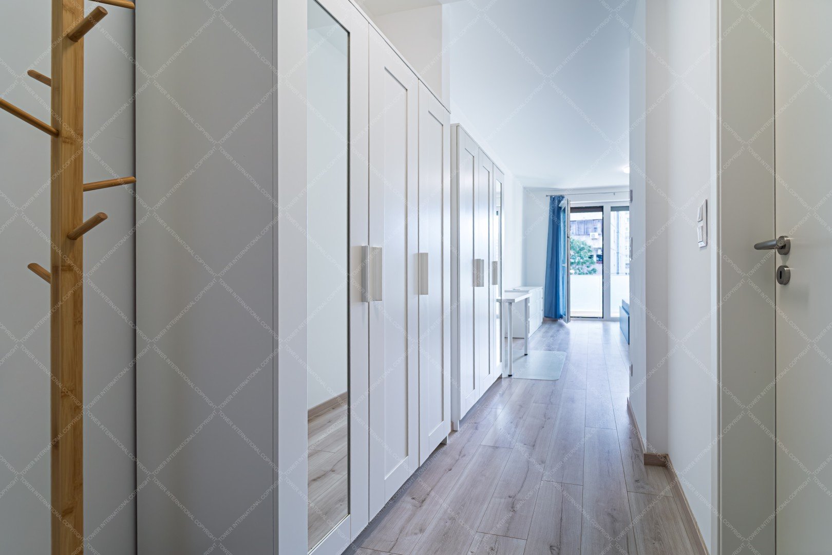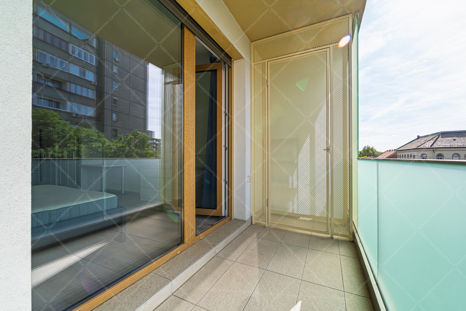 A modern 30 sqm studio apartment is available for long-term rent in the 8th district, in the newly built I6 Residence (completed in 2023). The apartment is located on the 4th floor of a building with an elevator and features a balcony overlooking a quiet square.