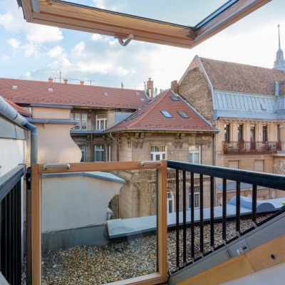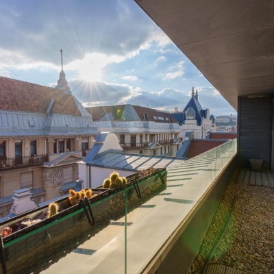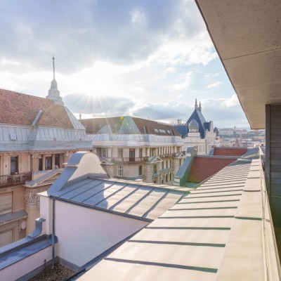 Building features a beautiful facade and art deco style interior. Just a few steps from the Parliament and a short walk to the Bank Centre and the river Danube, this is a prime location and building for those seeking that little bit extra in Budapest. The terrace of the property has a beautiful panoramic view of St. Stephen's Basilica and Buda Castle.