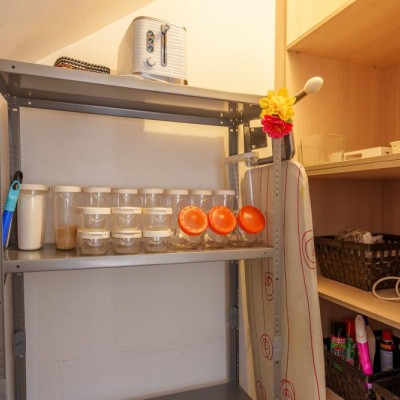 The apartment is furnished but features a spacious open plan living room and kitchen and two nicely finished bathrooms.