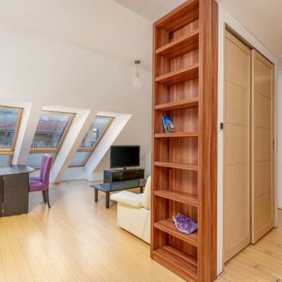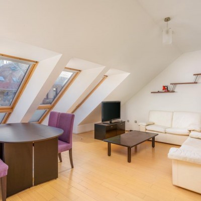 Also located on the top floor of one of the most popular building in the city (Garibaldi Residence), this exclusive two-storey apartment is located inside. A magnificent old classical bank palace completely rebuilt in 2008.Bright and quiet apartment. The condominium has 24h reception.
