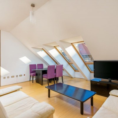Fully furnished exclusive DUPLEX apartment is available for rent! Situated in one of Budapest's most impressive and stylish apartment buildings. This very elegant 2 bedroom apartment benefits from an unbeatable location in District V, along with top modern conveniences inlcuding in-wall and under-floor heating and air conditioning, built in closets, lots of storage space, and a superb modern fitted kitchen.