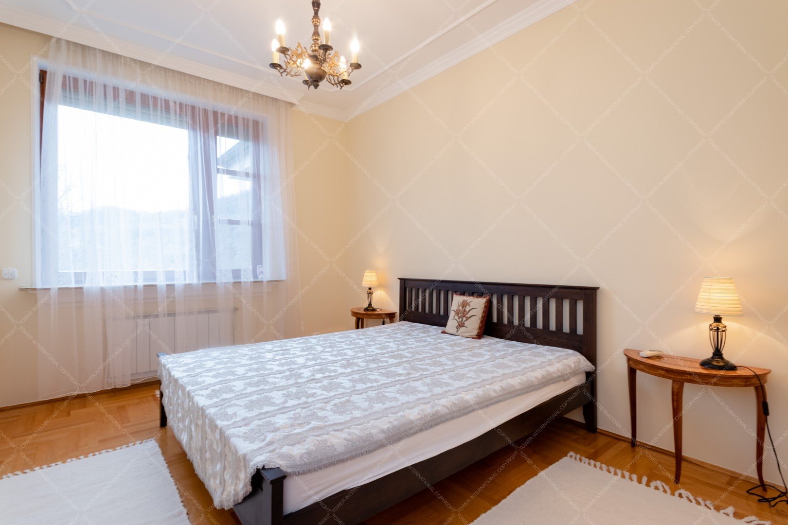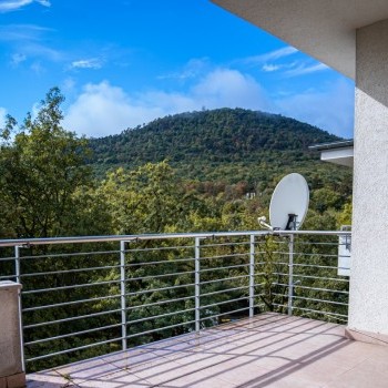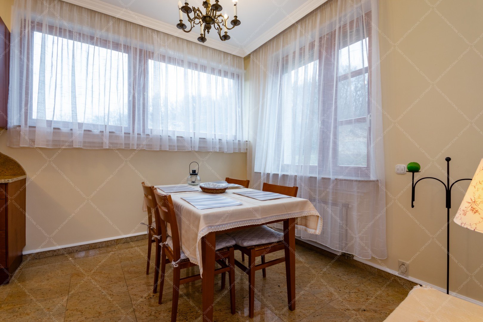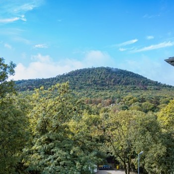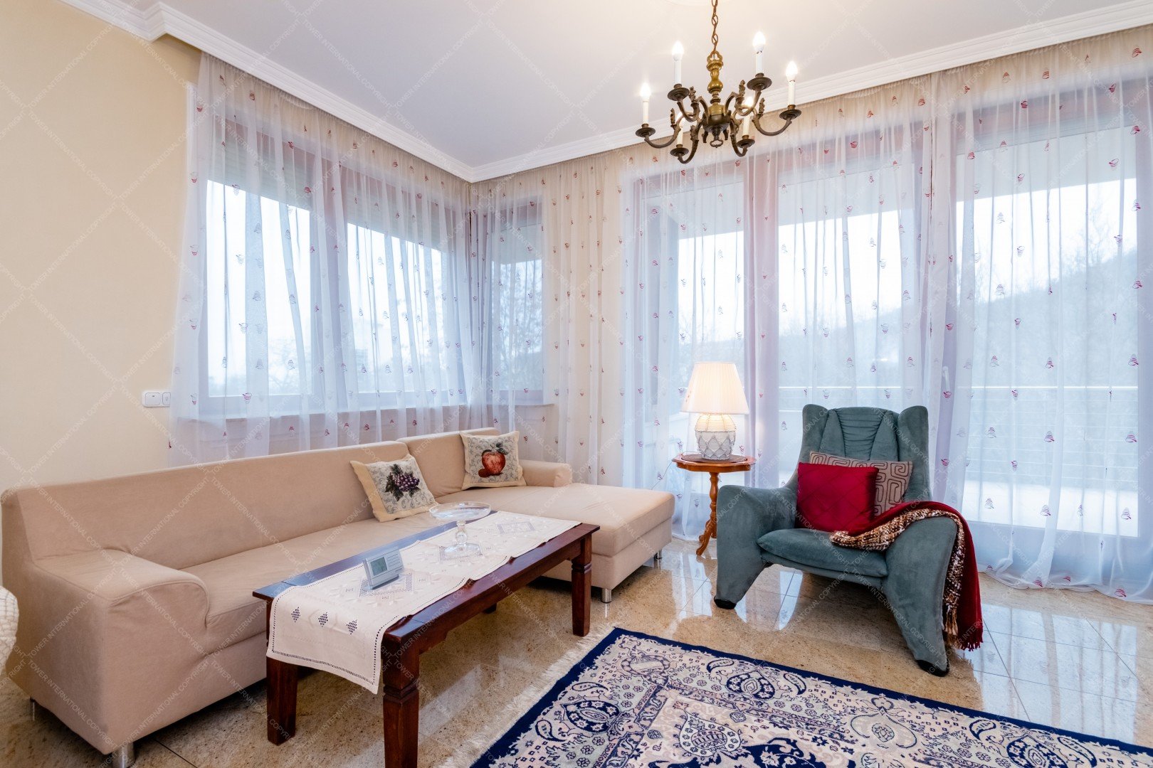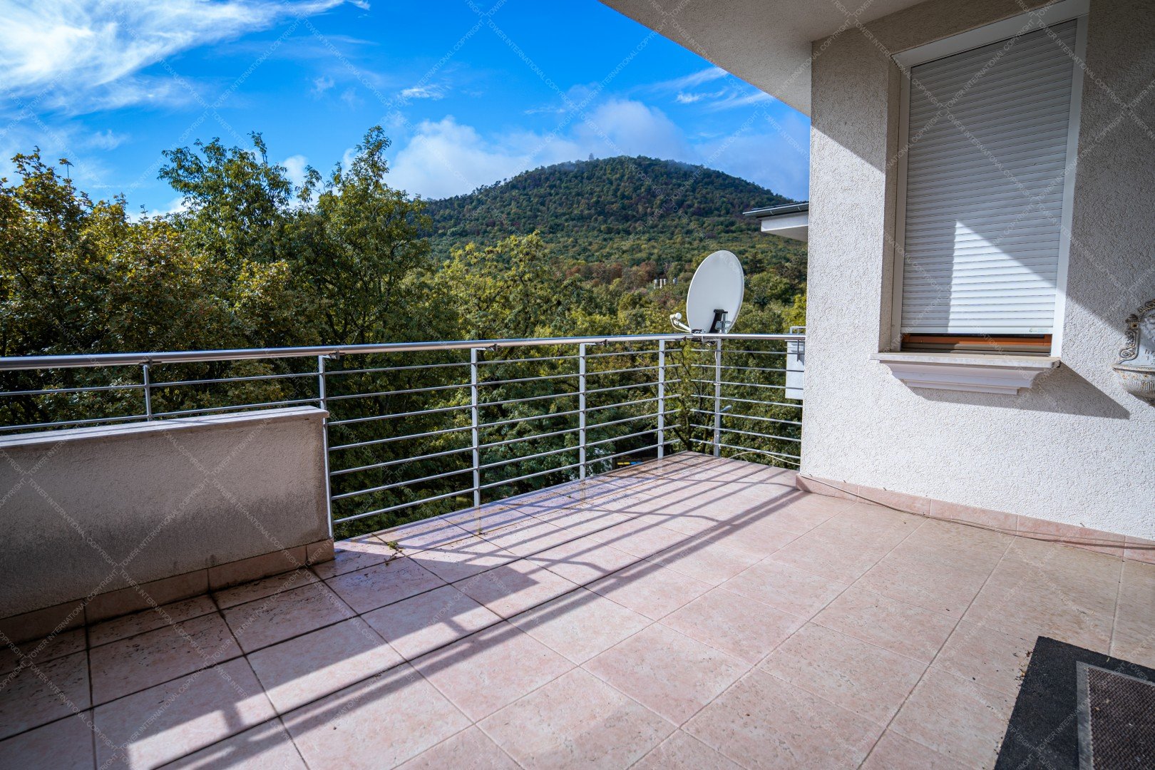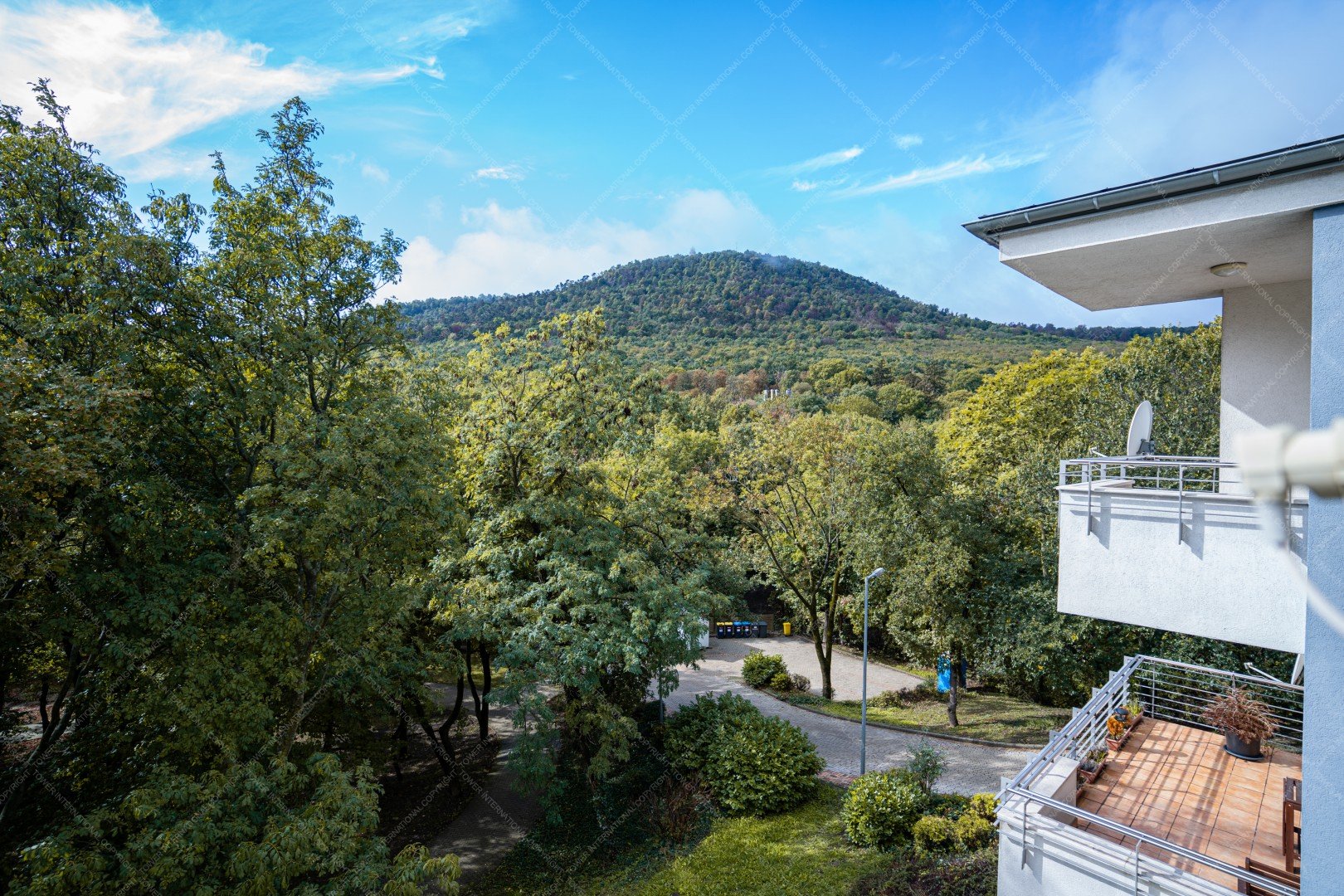 Bp. II. Hárshegyi road, several hectares of mature trees and evergreen plants, 24-hour reception, in a gated residential park (Eurodomb), elevator building on the 1st floor of 100 sqm + 25 sqm terrace, D-NW, overlooking the park, eternal panoramic apartment, furnished for long term rent!