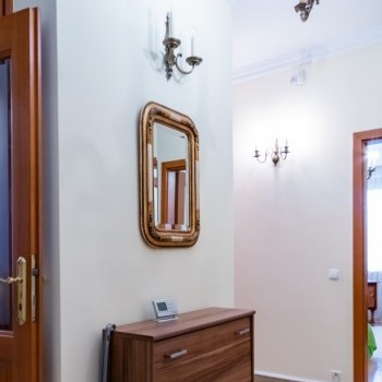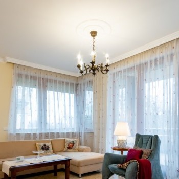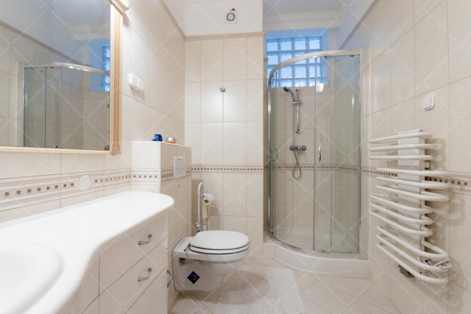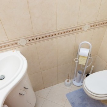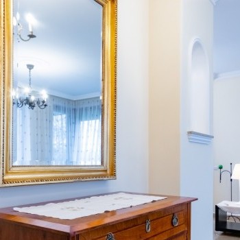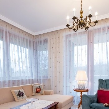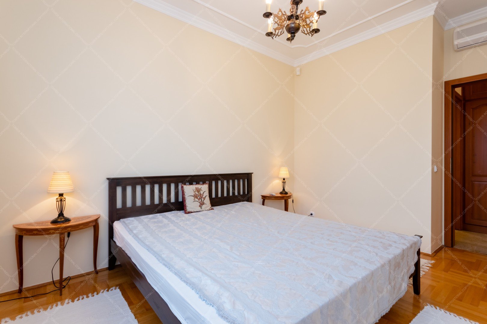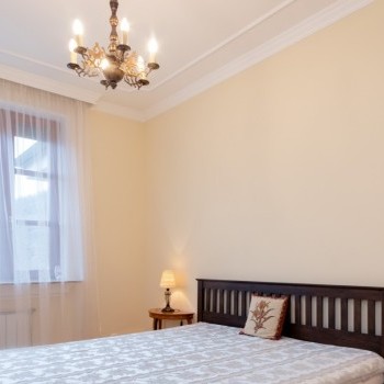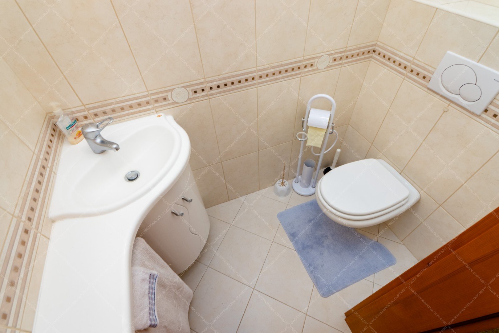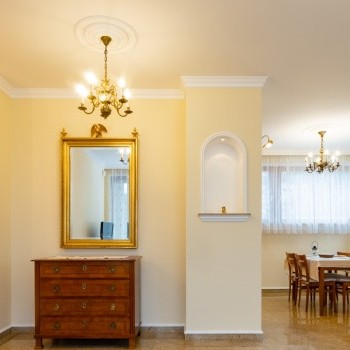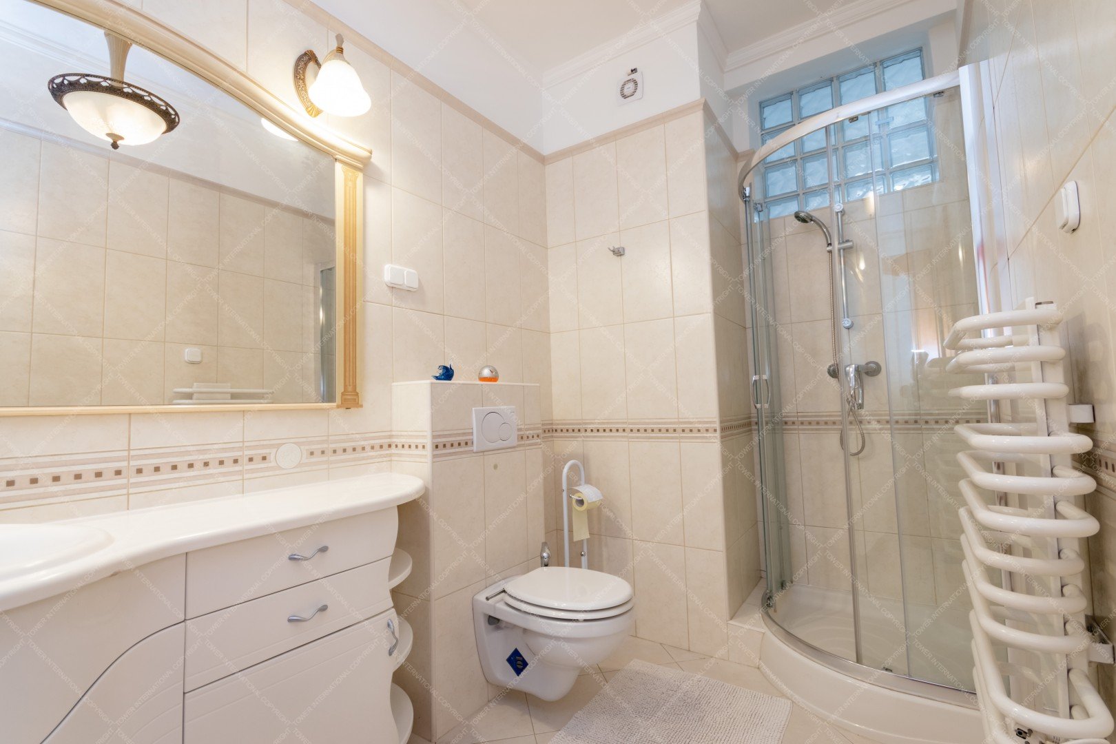 The apartment consists of 2 bedrooms, a living room, a bathroom (with bathtub, toilet and shower), a restroom and a fitted American-style kitchen with dining room, a pantry, 2 terraces and 1 garage also belong to the property, which is air-conditioned and protected by alarm system.