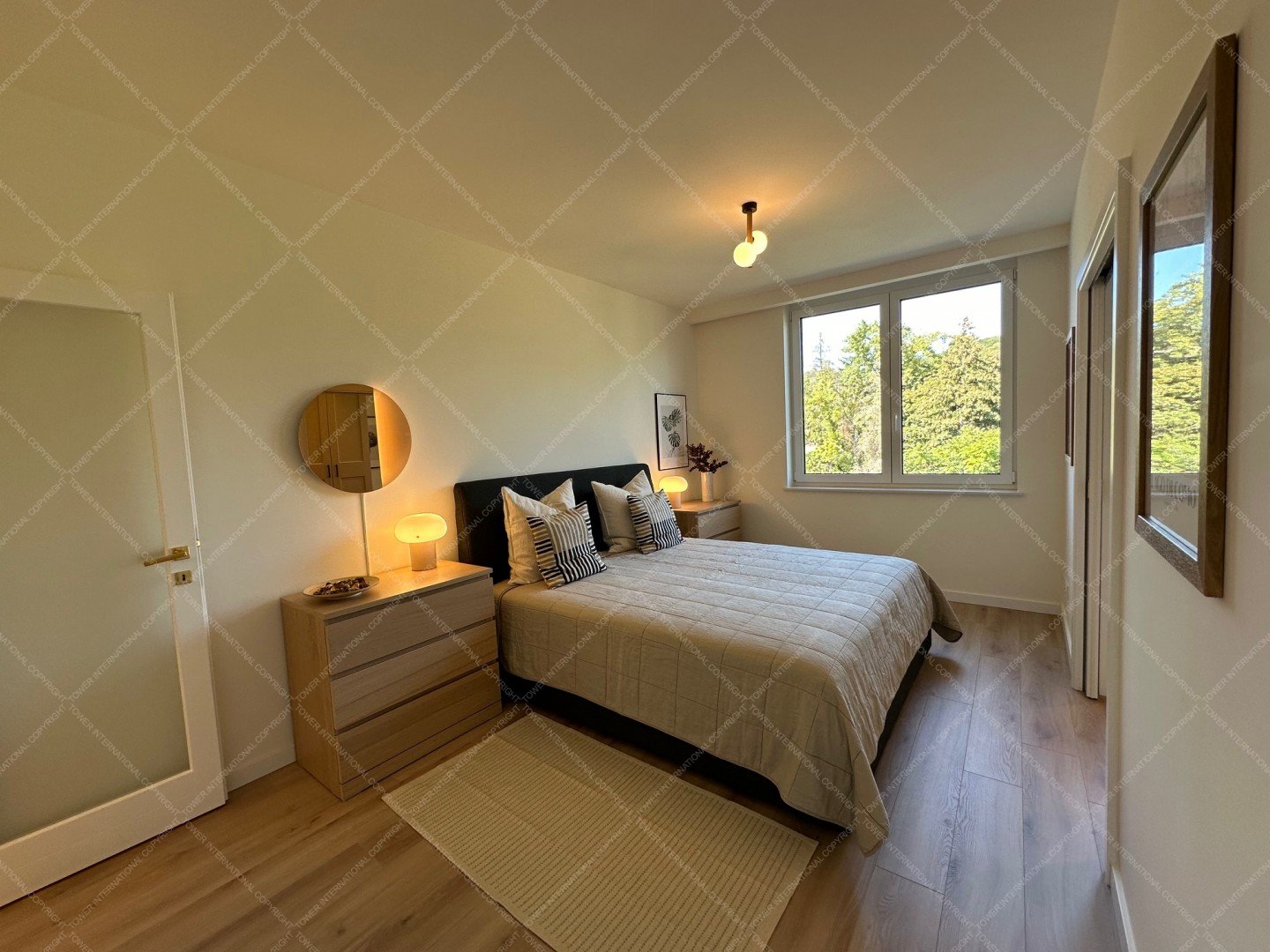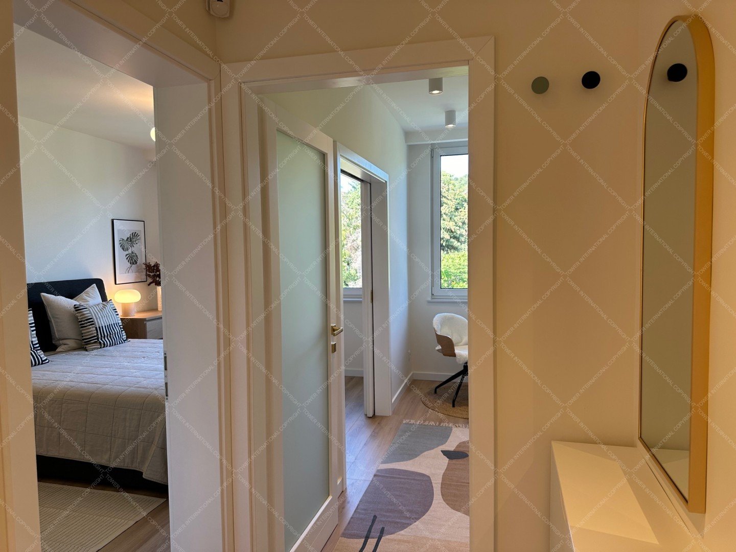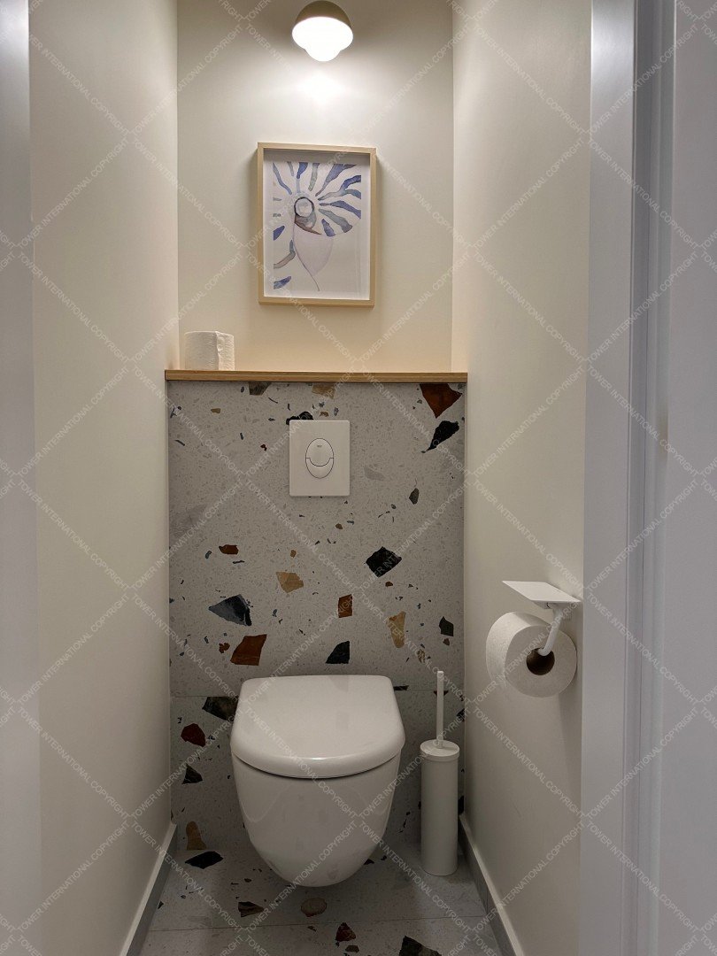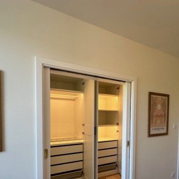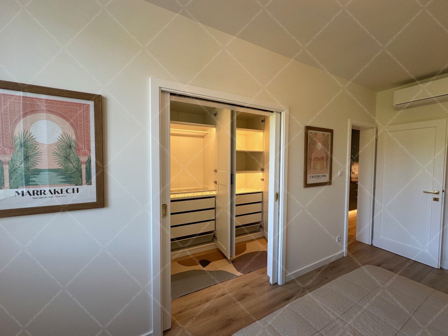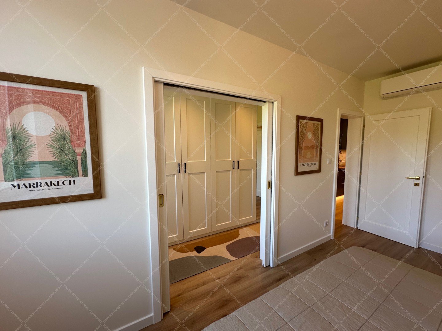 Renovated with premium materials and high comfort in mind, the apartment features wooden flooring, underfloor heating, air conditioning, solid wood doors, alarm system, and large windows. A private storage room is located next to the entrance.