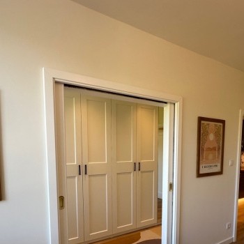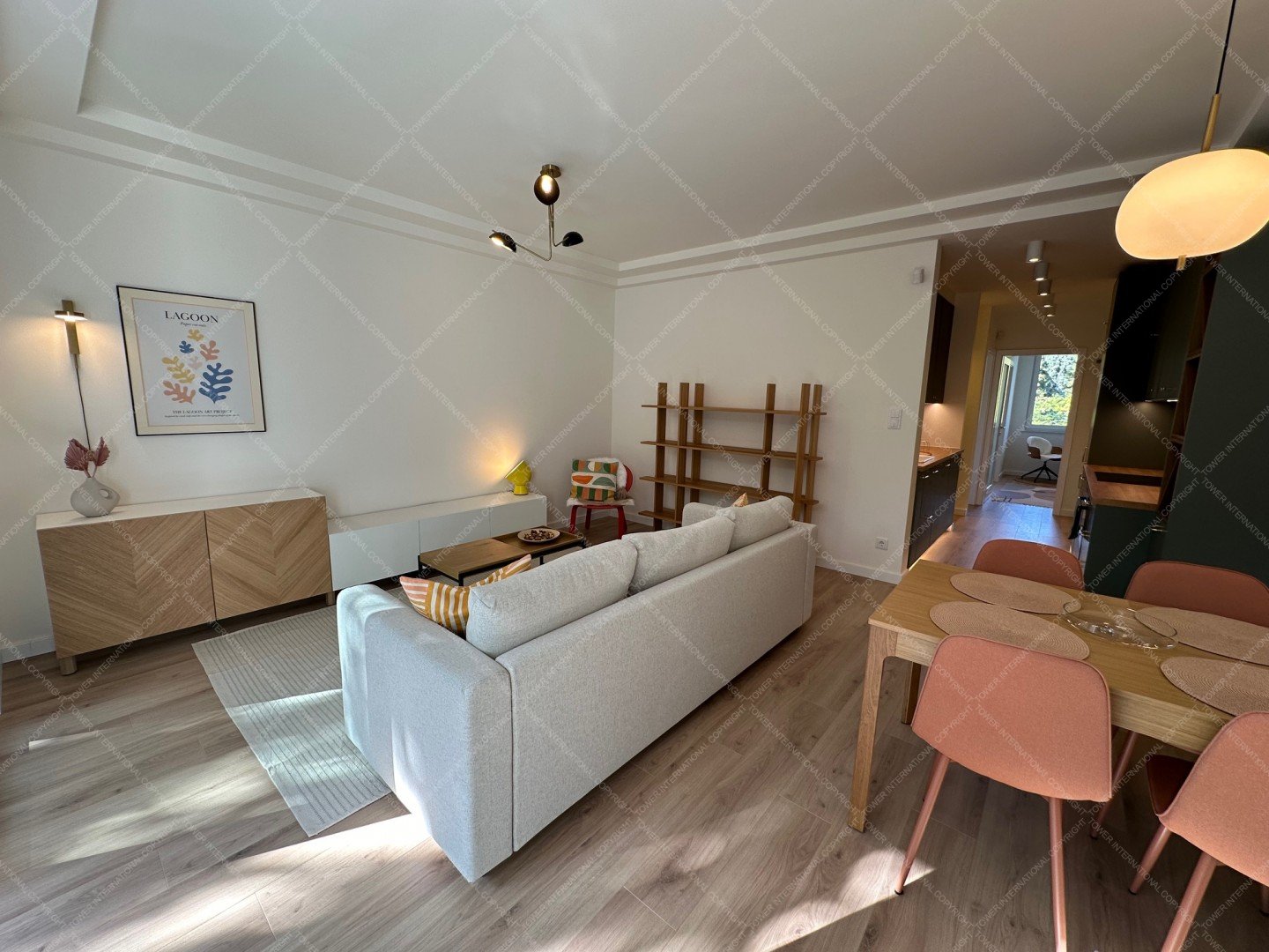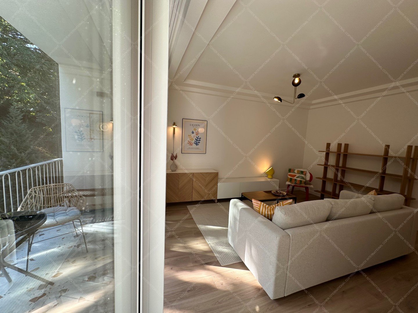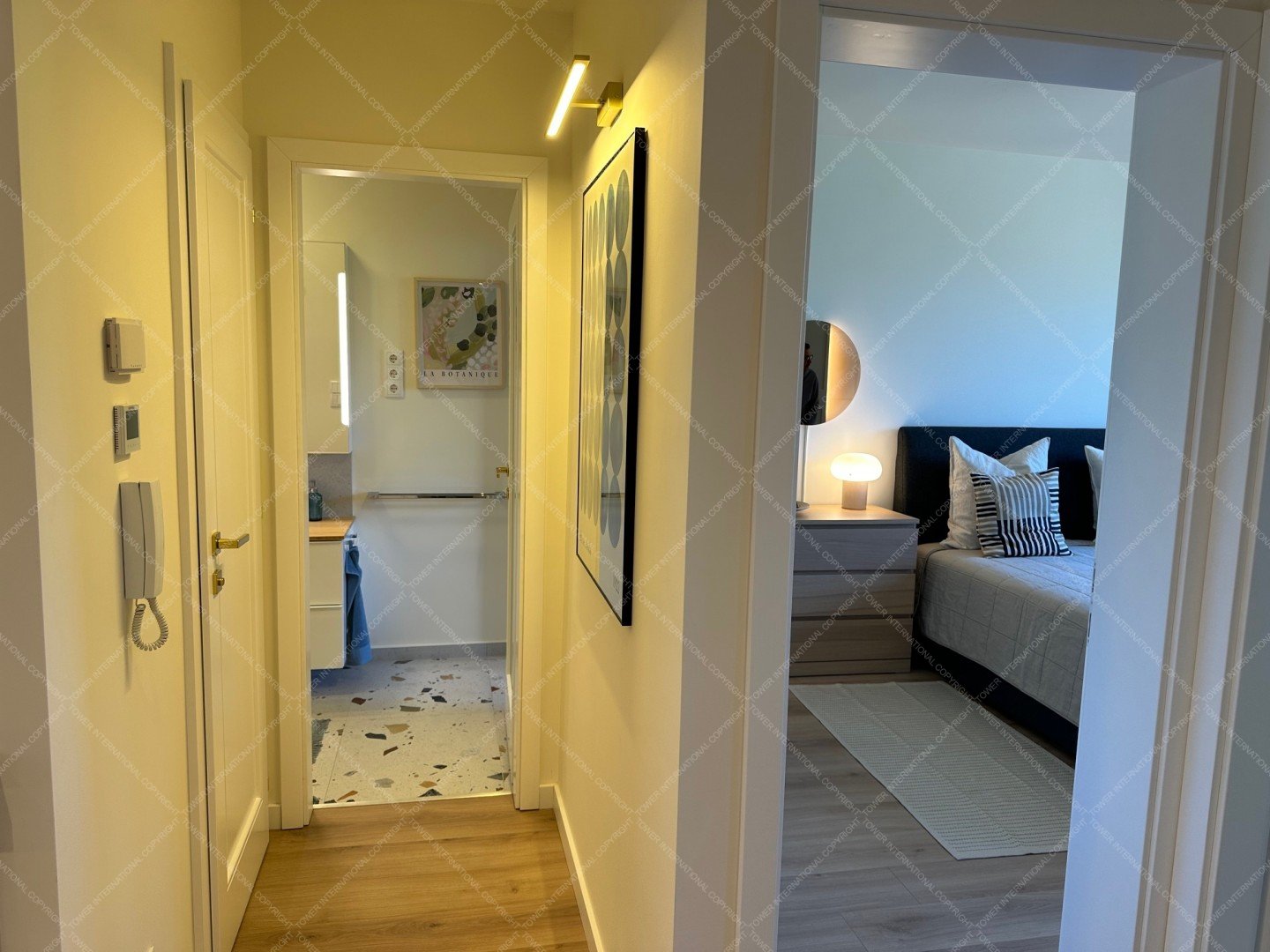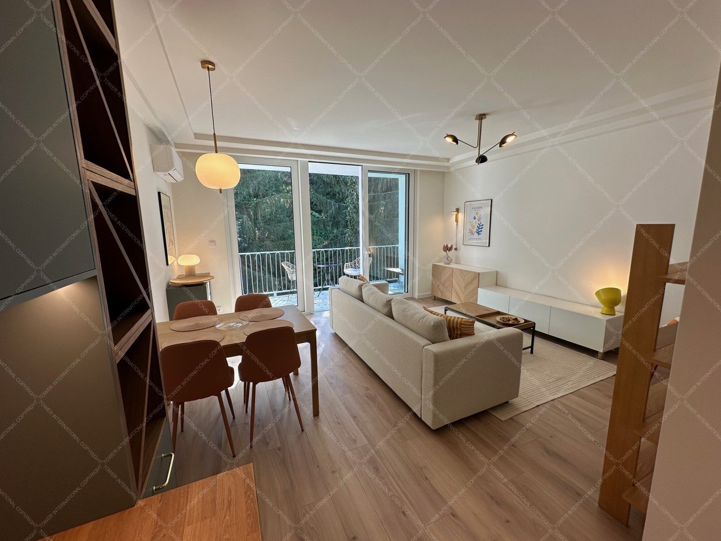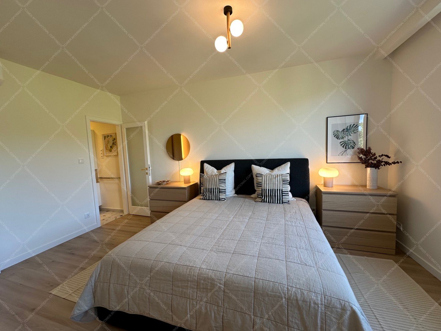 Renovated with premium materials and high comfort in mind, the apartment features wooden flooring, underfloor heating, air conditioning, solid wood doors, alarm system, and large windows. A private storage room is located next to the entrance.