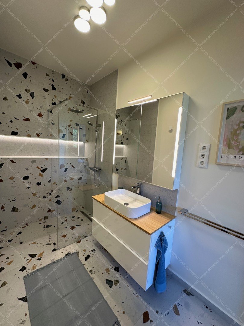 This 65 m² apartment with a 6 m² covered terrace is located on the top floor of a four-unit building, surrounded by greenery and tranquility. Every window overlooks the garden or the scenic Hármashatár and Mátyás Hills, ensuring complete privacy and a peaceful atmosphere.