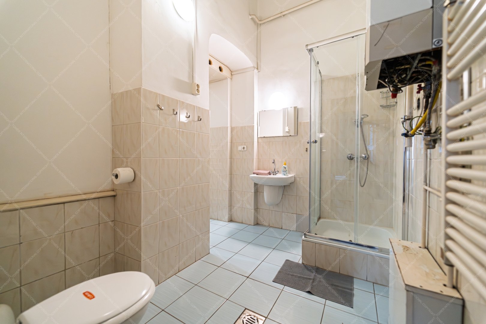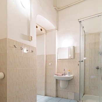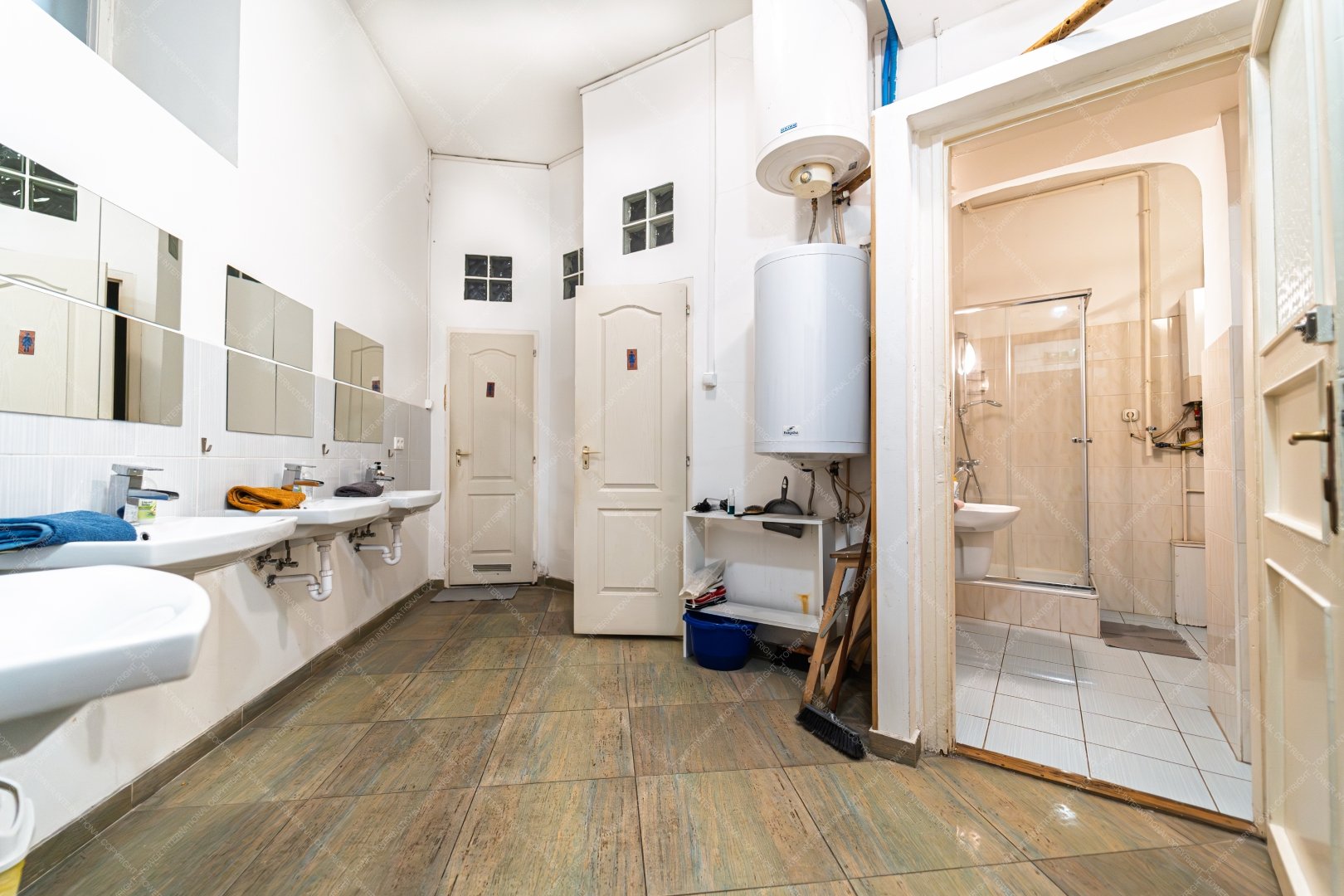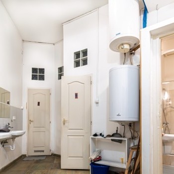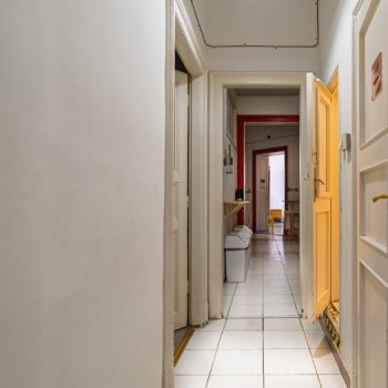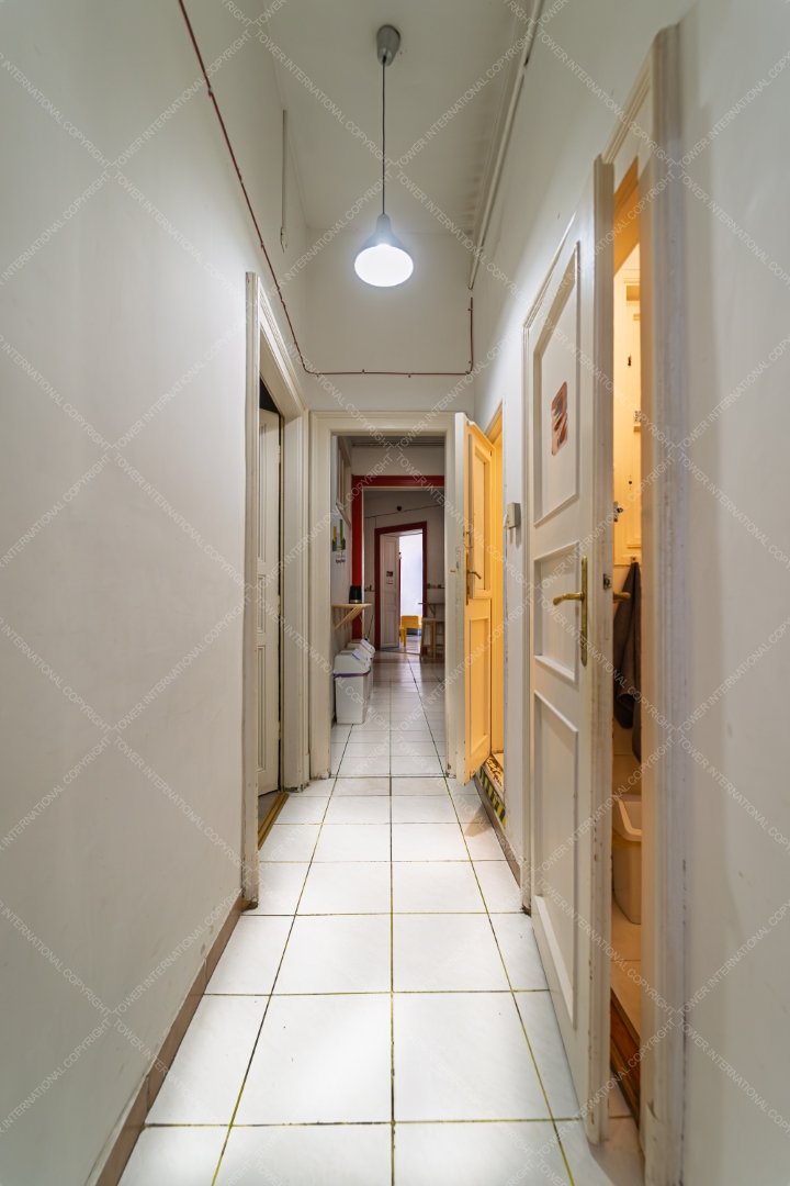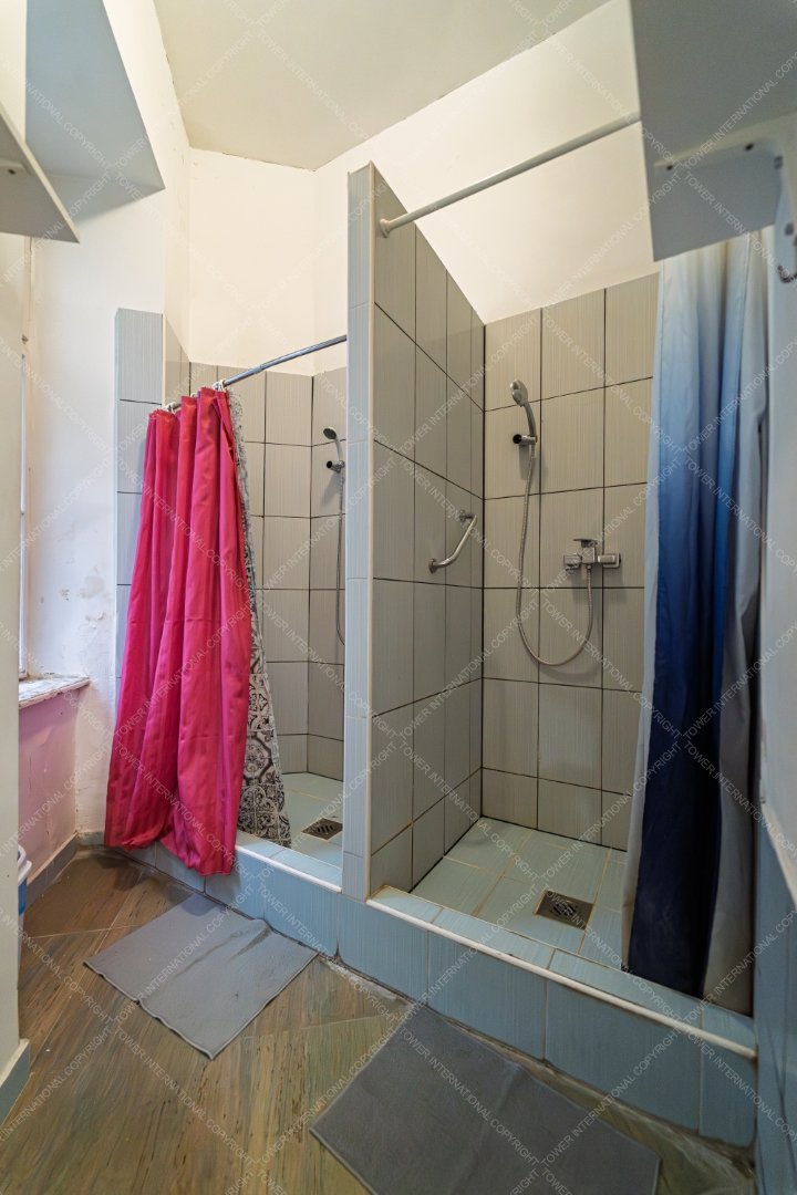 The apartment is on two title deeds, 128 sqm + 81 sqm, a total of 209 sqm, it is opened together and has been used as a hostel in the past few years. In its current layout it has 6 large rooms, 2 smaller rooms, a reception area, 2 bathrooms and 2 separate toilets and a kitchen, plus a balcony.