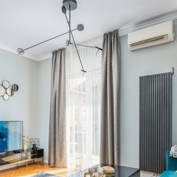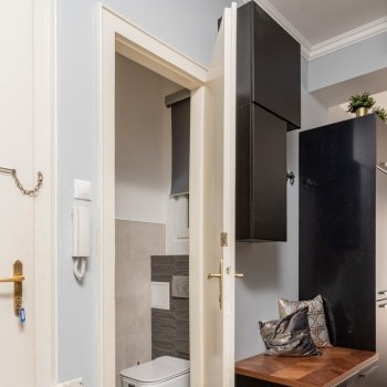 We are offering for rent a beautiful, newly renovated apartment, designed with the help of an interior architect in Balzac utca, district 13. It is located on the fifth floor of a classic building in good condition, windows overlooks the street. Distribution: 2 bedrooms, 2 bathrooms (bath and shower), balcony, spacious living room with open plan kitchen and dining area.