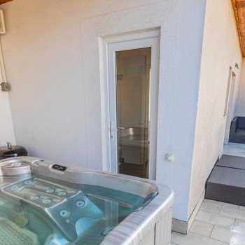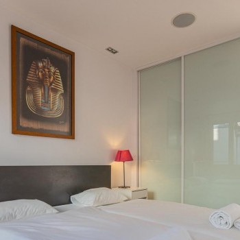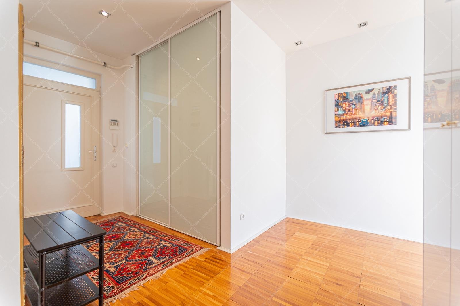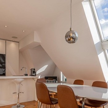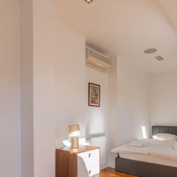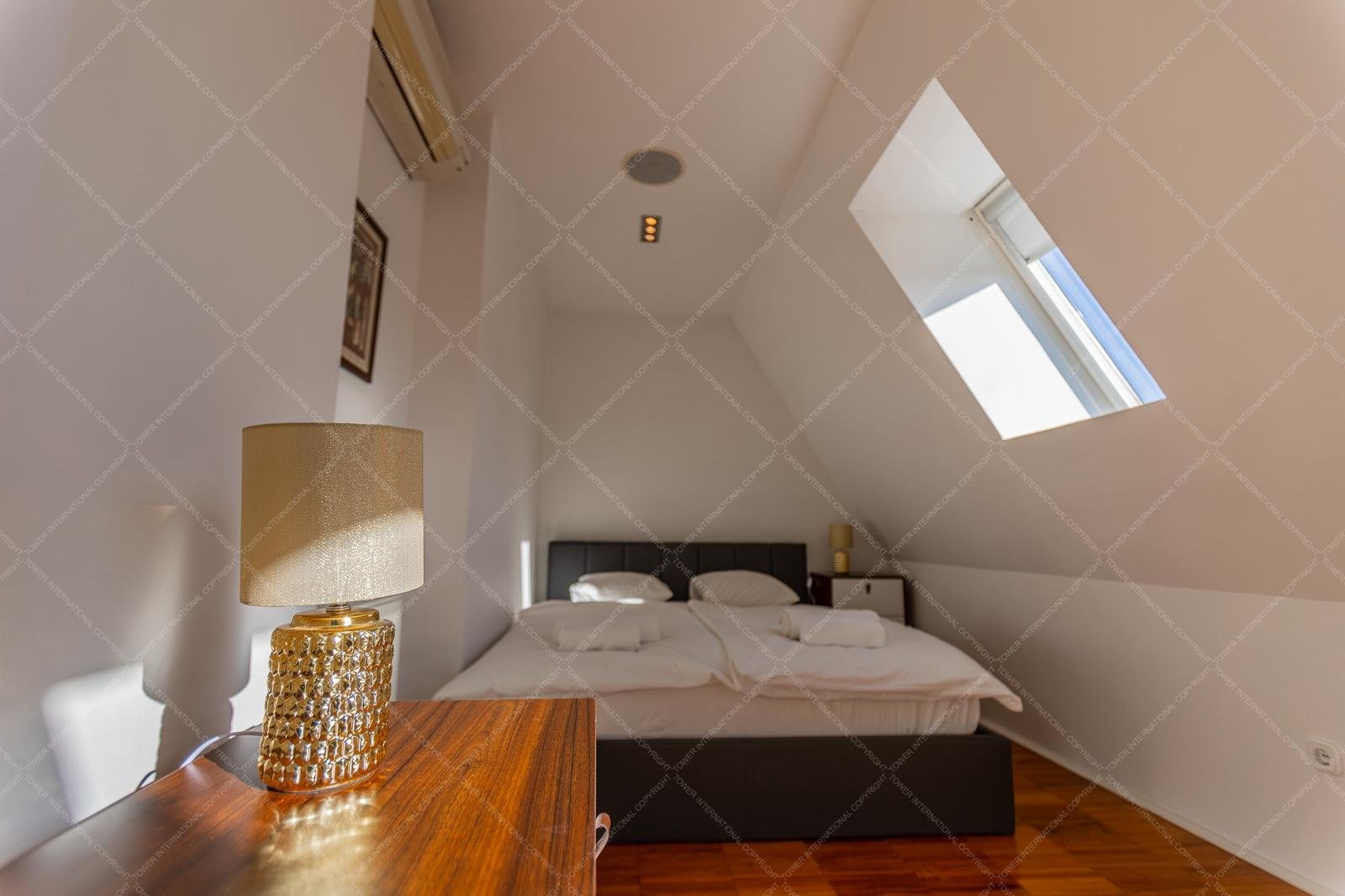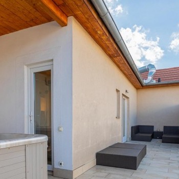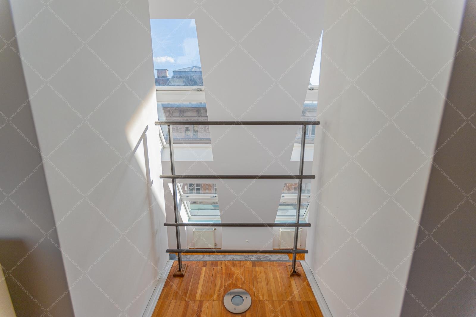 Welcome to this spectacular newly made luxury duplex penthouse. Excellent located in a house from 1880s with decorative details at Térez körut with windows looking at Király utca. The duplex penthouse has the size of 133 m2 and a terrace of 32 m2 (This means a total of 149 m2 in the apartments papers since you add half the size of the terrace). The apartment has a kitchen open with the living room, two bedroom, three bathrooms and an outdoor jacuzzi on the terrace. Minimalistic kitchen equipped with white LG HI-MACS work top. Living room with 5, 6 meter plus ceilings and huge windows. The master bedroom suite has hotel feeling and is open with the bathroom. The apartment has wooden floors, air-conditions, alarm system and built in multiroom audio system (8 pair of speakers built in the celling). The terrace is perfect for relaxing in the jaccuzzi or entertaining. Nerby a garageplace is inluded in the apartment. Very close to Octogon, Liszt Ferenc tér, Andrássy út and public communication. In the neighborhood you find a lot of popular restaurants. Internet, cable-TV, phone line, cleaning and washing service can be arranged for an extra fee. The apartment can be rented with or without furniture.