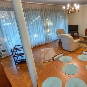 Near Pusztaszeri roundabout, British School and Rózsakert shopping center, 105 sqm living room + 3 bedrooms, ground floor, bright, large balcony apartment for rent for a minimum of one year. Fully furnished and mechanized. Parking space for car in the garage is included in the property. Elegant, cozy apartment with modern furniture, completely renovated. 2 bathrooms (one with a bathtub, the other with a shower). Overhead costs are payable according to consumption. Common cost, which includes the apartment's water consumption, 30,000 HUF An additional 15,000 HUF/month flat rate for water and sewage, and 3,800 HUF/month for waste collection. Excellent public transport and infrastructure in the area. Bus stops 11, 111, 91, 291 nearby. Batthyány Square, 10 minutes away, in addition, direct connections to Nyugati Railway Station, Flórián Square and Zugliget. Pets are not allowed. 2 months deposit required. Rent: 700,000 HUF or 1,750 EUR.
